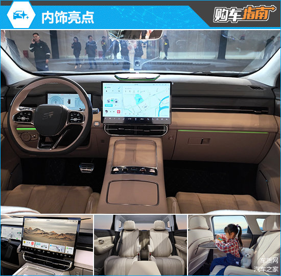 内饰方面,新车在老款车型的基础上进行了优化升级,但依然采用简洁的设计风格,并且很注重科技感的营造。老款车型的电子挡把换挡形式被电子式怀挡换挡形式取代,精致感提升的同时,也有助于前排储物空间的优化。同时,中央通道区域还设置了物理按键,用于控制空调,操作便利性得到提升。座椅方面,云朵舒享座椅充分考虑了人体工程学原理,拥有10层舒适性结构,并采用慢回弹减震海绵,舒适度堪比高端家居沙发。车机系统内置高通骁龙8155芯片,可以实现多程序同时运行不卡顿,导航、娱乐、语音指令同步运行不卡壳。