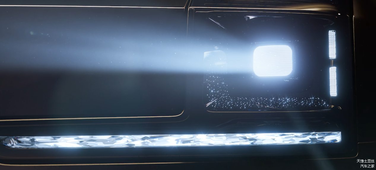 浩瀚星钻矩阵灯组,“钻石般璀璨,繁星般梦幻”,双横置日行灯由数不清的钻石切割面形成,光闪闪夺人二目,点亮效果确实惊艳。大灯还具备转弯随动功能。下面这张图片能清晰看出大灯周围浩瀚星钻的效果。同样精彩的还有尾灯,稳健大气的环幕星钻贯穿式尾灯,42242个钻石切割面,共同折射出灿烂星河,在滚滚车流中始终是最耀眼的那一颗明星。