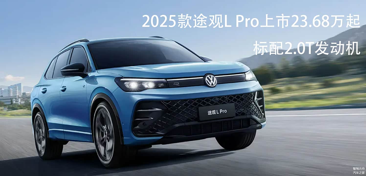 日前,2025款途观L Pro正式上市,售价为23.68-26.68万元。全系搭载2.0T发动机,包含6款车型,主要有智行、智领、智尊三个配置梯度。官方优惠信息:即日起至2025年5月31日,至高综合优惠5.8万元,以及整车终身质保,此综合优惠不包含国家补贴。
