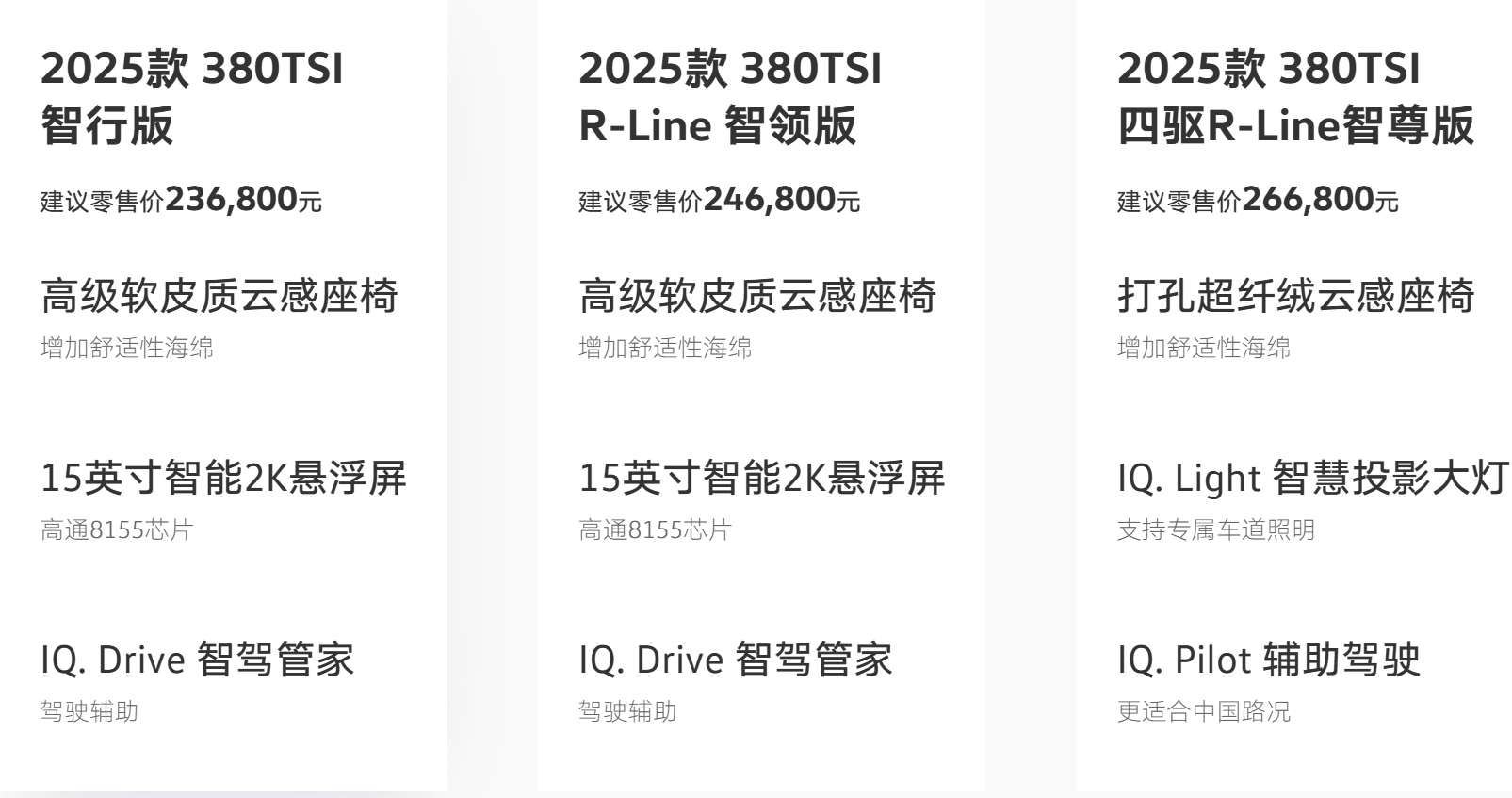 途观L 2025款PRO 380TSI 四驱R-Line智领版 |