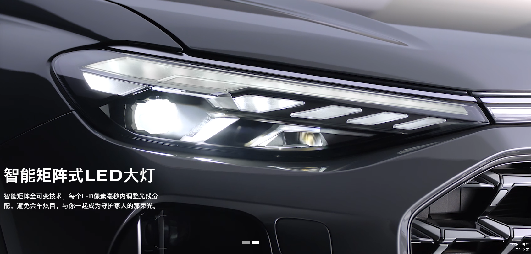 最后,压轴的是“灯厂”的拿手好戏,智能矩阵LED大灯拥有全可变技术,每个LED像素毫秒内调整光线分配,会车不刺眼,保障你和家人的安全。