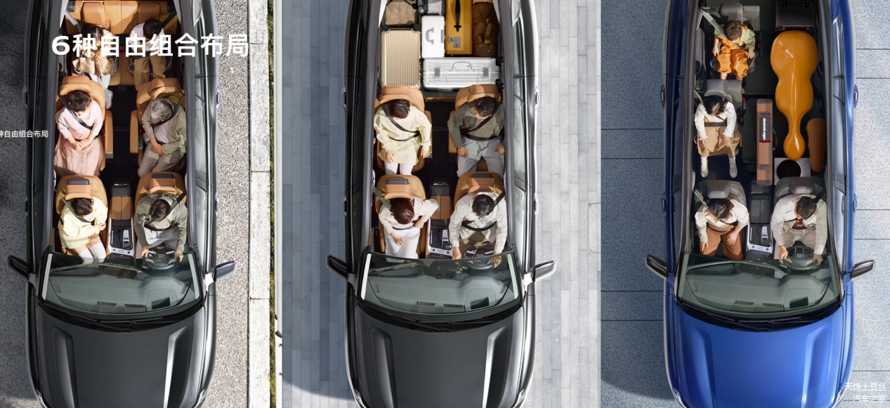 而且,座椅有多达6种自由组合布局,不管是载人还是载物,露营远足特别实用方便。
