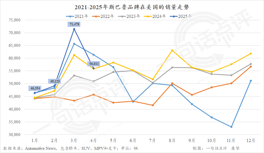 此外,需要说明的是,4月斯巴鲁的增幅之所以会不足1%,是因为之前的3月其收获在美国市场的单月历史最高纪录7.1万辆。这几乎掏空了斯巴鲁在美国的新车库存,因此4月能微增已十分难得。