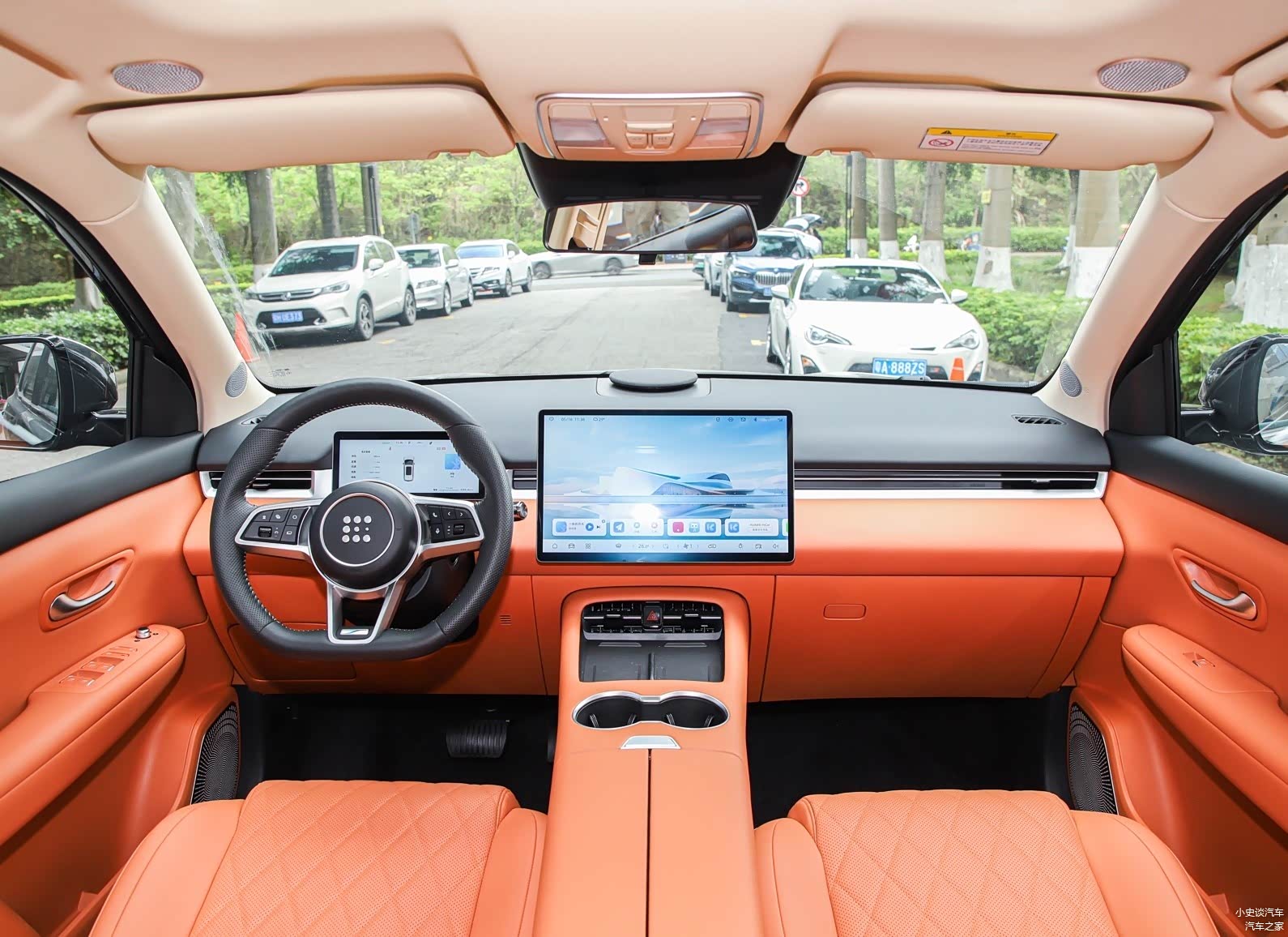 进入车内,电E5 Plus的内饰设计给人耳目一新的感觉。整体采用环抱式座舱设计,中控台略微偏向驾驶员一侧,提升了操作便利性。内饰用料方面,大量使用了软性材质包裹,触感舒适,配合精致的缝线工艺和恰到好处的镀铬装饰,营造出超越同价位车型的豪华氛围。中控台上的双联屏设计,由12.3英寸全液晶仪表盘和12.3英寸中控触摸屏组成,两块屏幕采用一体化设计,视觉效果震撼。全液晶仪表盘显示信息丰富且可自定义,支持多种主题切换。空调控制区域保留了实体按键,方便驾驶时盲操作,这种虚实结合的设计理念体现了对用户体验的重视。座椅方面,蓝电E5 Plus采用了皮质包裹,填充物软硬适中,提供了良好的支撑性和舒适性。主驾驶座椅支持6向电动调节,高配车型还配备座椅加热和通风功能。