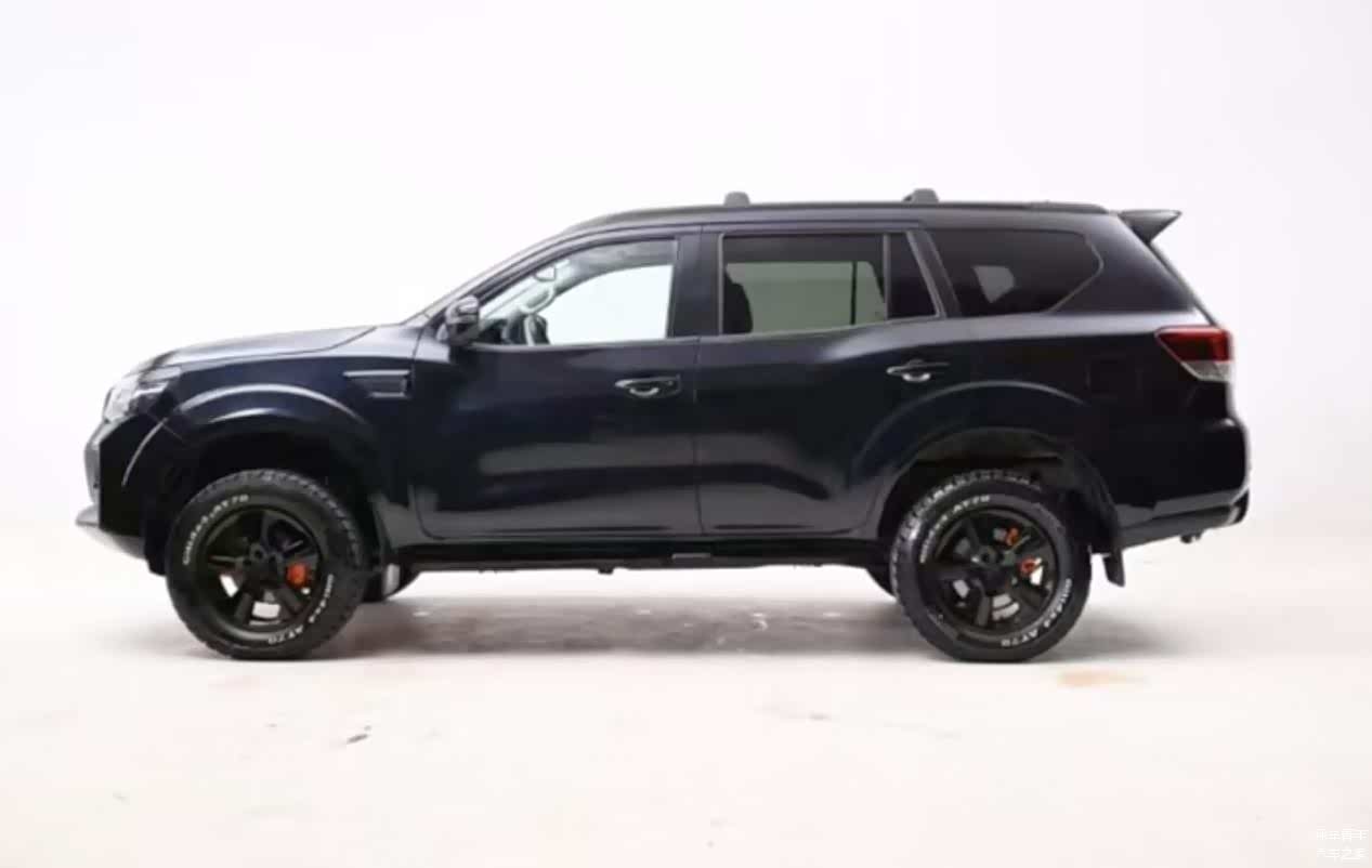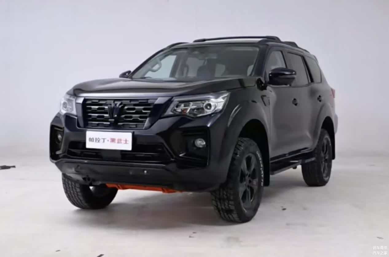 首先在外观方面,新款日产帕拉丁整体延续了老款车型的设计风格,不过黑武士版在经过全车黑化之后看起来还是非常炫酷的。新车前脸依旧是我们熟悉的小尺寸梯形进气口,内部采用了熏黑处理的网状格栅,周边还运用了镀铬装饰点缀。两侧大灯组炯炯有神,下方包围硬朗有力,同时新车的接近角也由原来的32度提升到了33度。
