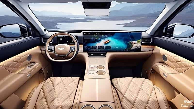 内饰方面,采用了六座布局,配备女王座椅和第二排行政级座椅,舒适性极佳。前方大尺寸屏幕延伸至副驾驶侧,科技感十足。第二排还配备了吸顶屏,创新的Smart Surface交互屏操作便捷。智能化方面,预计搭载与酷睿程、Momenta联手打造的智能辅助驾驶系统,为行车安全保驾护航。