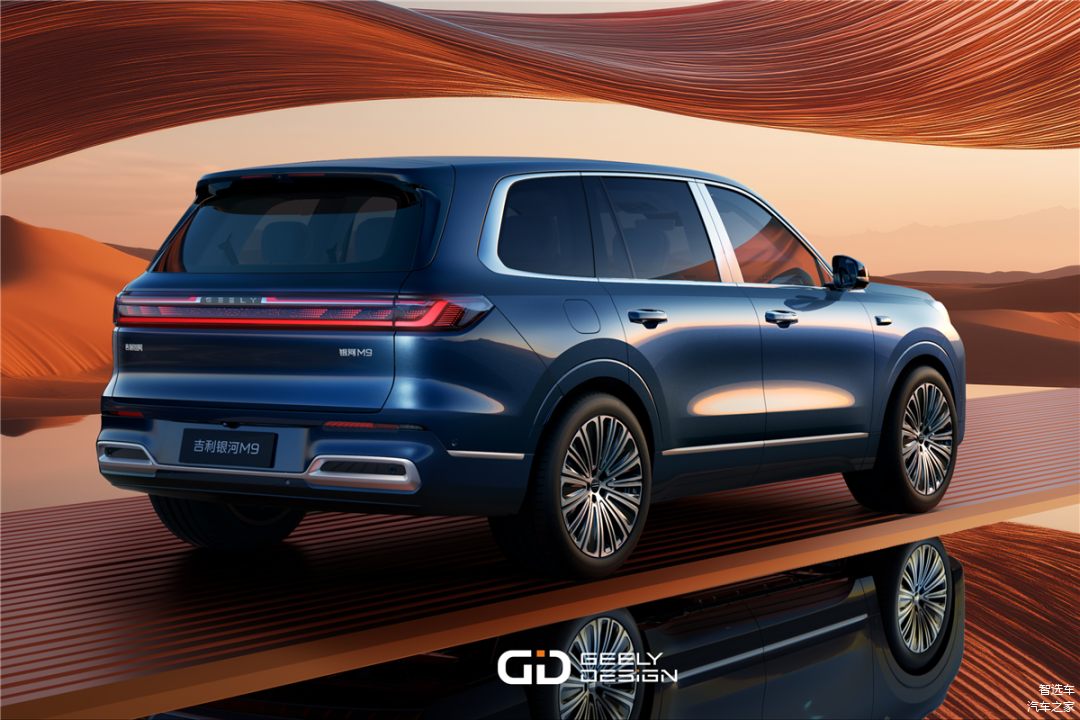 至于车尾的“双边共双出”镀铬排气装饰,有人可能会觉得它不符合吉利银河M9的新能源身份,但是它毕竟还是有一台插混专用发动机的,配个排气装饰也算合情合理。
