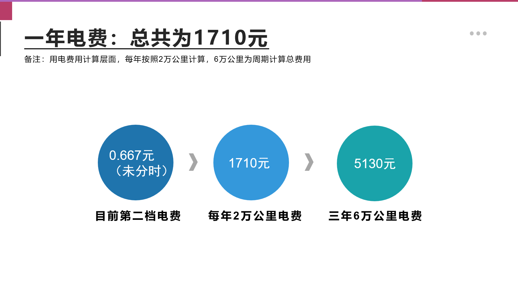 2025款蔚来ET5 75kWh车型搭载一块三元铁锂电池组,电池容量为75千瓦时,我们以CLTC工况下续航里程585公里举例,以一年行驶20000公里计算,需要消耗约2564千瓦时电能,按照上海正常电价来计算,若是家用充电桩这个电量处于第二档3120-4800千瓦时范围里(包括家里其他电器总用电量),电费是0.667元(未分时),一年2万公里总电费为1710元,三年6万公里为5130元。当然车主还是可以根据自己需求和习惯选择在波谷时间段充电,这个价格会更低。