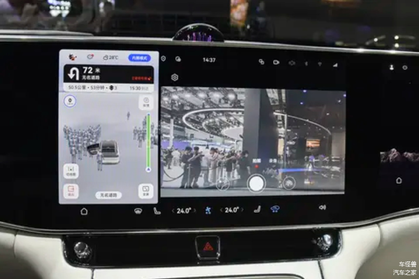 此外,尊界S800车内也广泛地采用了经过精心雕刻的水晶饰品,例如位于仪表台前面的HUAWEI SOUND音响系统以及功能岛按钮等部分。车辆的后排中央扶手区预计将配备车载冰箱,并且该区域将使用实木制成的盖板。