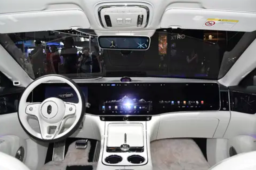 在车辆的内部装饰上,尊界S800采纳了环抱式的设计理念,并采纳了三连屏的独特设计技巧。这款新车配备了三辐式的多功能方向盘和带有菱形图案的座椅,其副仪表板还提供了手机的无线充电选项,并特别采纳了怀挡的设计理念。氛围灯的使用范围相当广泛,涵盖了门板、高音喇叭和杯架等关键部位。此外,这款汽车还配备了电子外后视镜。