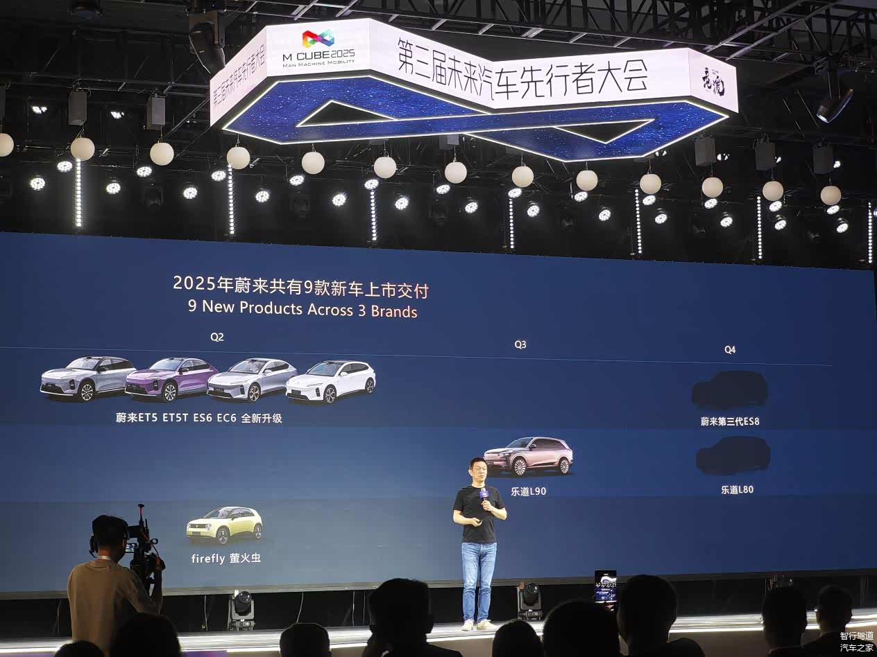 蔚来CEO李斌提出智能汽车的“新三大件”—— 自驾芯片、整车全域操作系统、智能底盘,强调通过自研技术实现用户体验的差异化。他透露,今年是蔚来产品大年,将有9款新车上市。包括:第一季度的ET9,第二季度的ET5、ET5T、ES6、EC6全新升级,萤火虫,第三季度的乐道L90,第四季度的蔚来第三代ES8、乐道L80。
