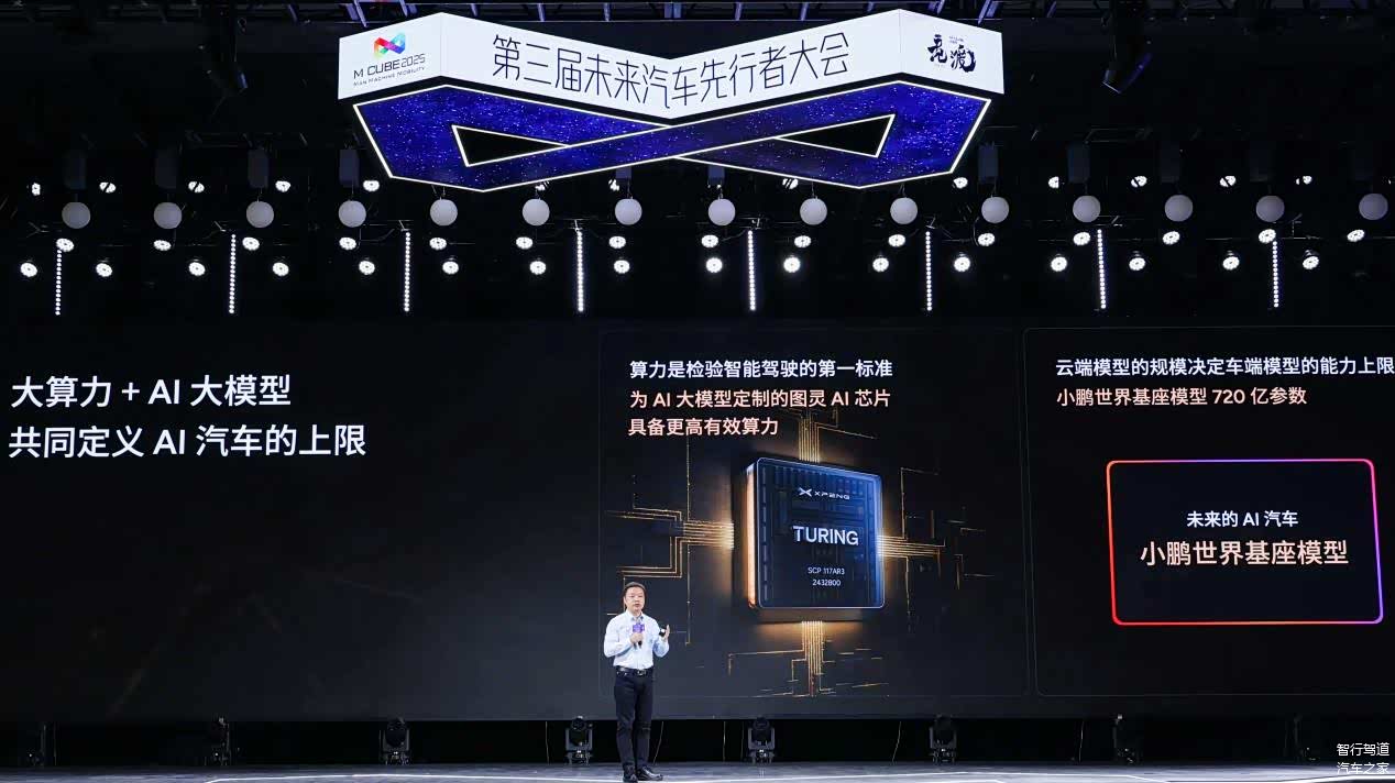 小鹏汽车董事长何小鹏在主题演讲中提出“算力是智能汽车的第一标准”,而小鹏720 亿参数大模型的预训练工作已进入攻坚阶段。他表示,小鹏正在构建“AI 定义汽车”的技术体系,通过多模态感知融合与云端算力调度,计划在 2026 年将小鹏的AI体系推向全球。