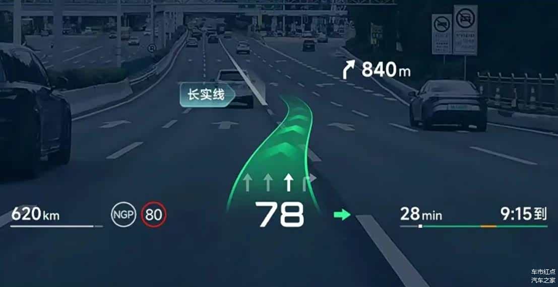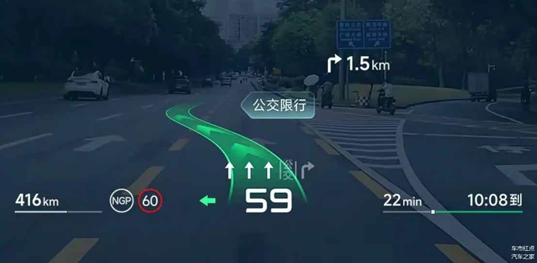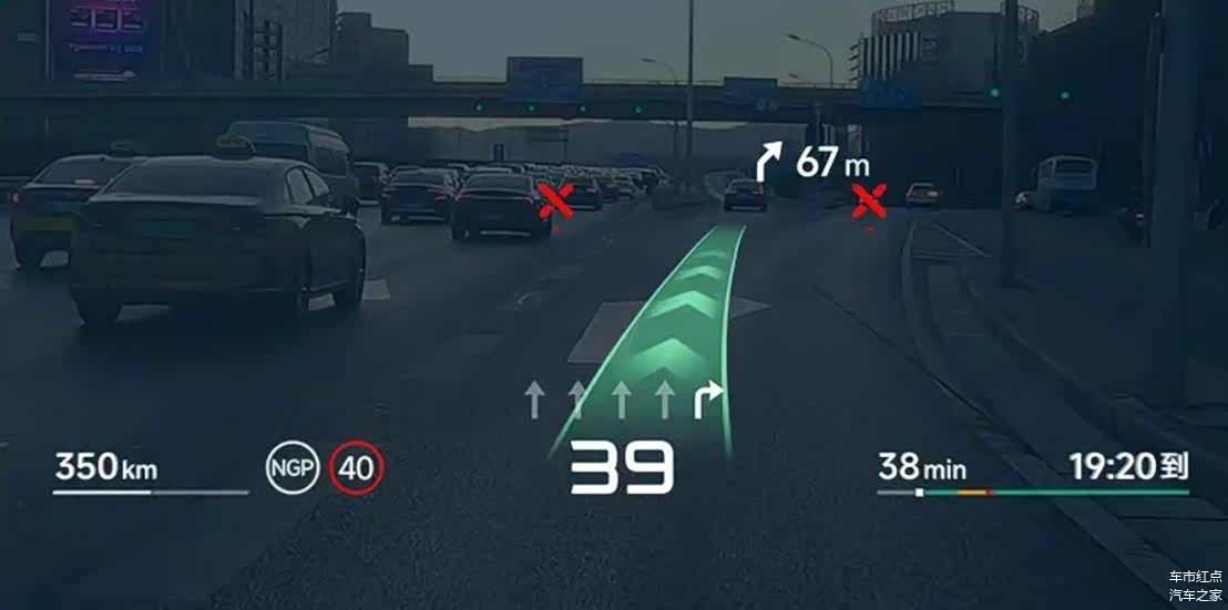 挡风玻璃上,导航路线被直接“画”在真实道路前方,变道时AR光毯清晰指引方向,岔路口则在错误方向上标出醒目的“X”标记。是不是感觉很科幻?这就小鹏刚刚宣布与华为联合研发,要首搭在 小鹏G7(图片 | 参数 | 询价)上的AR-HUD。