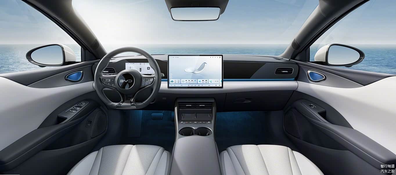 内饰延续海豹06GT设计风格,配备平底运动方向盘、全液晶仪表、15.6英寸悬浮中控屏及怀挡换挡机构。中控区域以圆形换挡面板搭配精致拨杆,门板与座椅融入大量曲线设计元素。