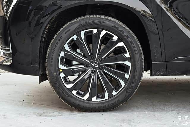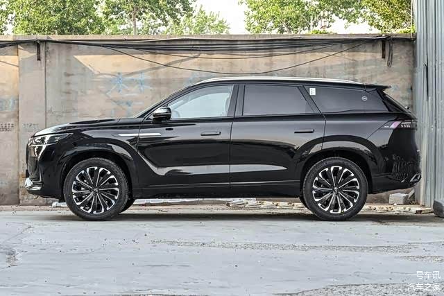 外观上,黑武士版有着独特的设计风格。前脸熏黑竖条状进气格栅搭配全 LED 光源前大灯组及自适应远近光系统,科技感与时尚感十足。前包围的熏黑与镀铬装饰件、梯形进气口,增添了车辆的层次感。车身的隐藏式门把手不仅美观还能降低风阻,前后轮眉及侧裙的熏黑装饰件、电动调节外后视镜、前排双层隔音玻璃和后排隐私玻璃,让整车看起来既大气又稳重。车尾的贯穿式尾灯组十分醒目,后挡风玻璃上方的扰流板与高位刹车灯,加上后包围底部熏黑装饰件和双边共两出装饰性排气罩,运动感爆棚。其车身尺寸为 4820x1930x1699mm,轴距 2820mm,属于标准中型 SUV,搭配双色多辐铝合金轮毂与 245/50 R20 轮胎,视觉效果出众。