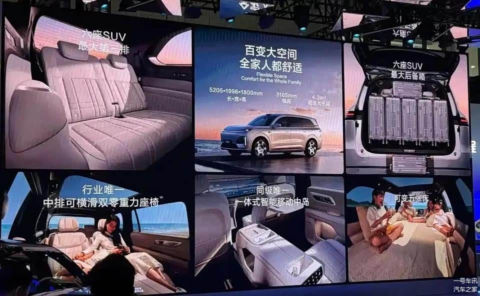 在空间表现上,深蓝 S09 堪称亮眼。其车身尺寸为 5205×1996×1800mm,轴距达 3105mm,与理想 L9 的数据近乎相同,可价格却比理想 L9 便宜近 20 万。不仅如此,该车第三排座椅并非形同虚设,成年人入座后不会感到局促,腿部空间可达 870mm,在同级别六座 SUV 中优势明显。更令人惊叹的是,满员状态下,后备箱仍能轻松容纳 7 个 20 寸行李箱,放倒第三排后,瞬间变身一张长达 2.5 米的 “露营大床”,空间利用率着实令人称赞。