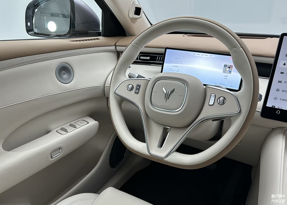车内配备15.6英寸2K屏幕,并支持五屏协同功能,可与中控屏、AR-HUD、仪表、后排屏及冷暖箱控制屏实现信息流转,搭载HarmonySpace 5智能座舱系统,具备跨设备协同操作能力,导航、音频及任务可在不同终端之间切换。后排区域设有MagLink拓展坞,适配多品牌平板产品,可实现观影与车机互动功能同步运行。车内提供极光紫、琥珀棕、深海蓝三种内饰主题。