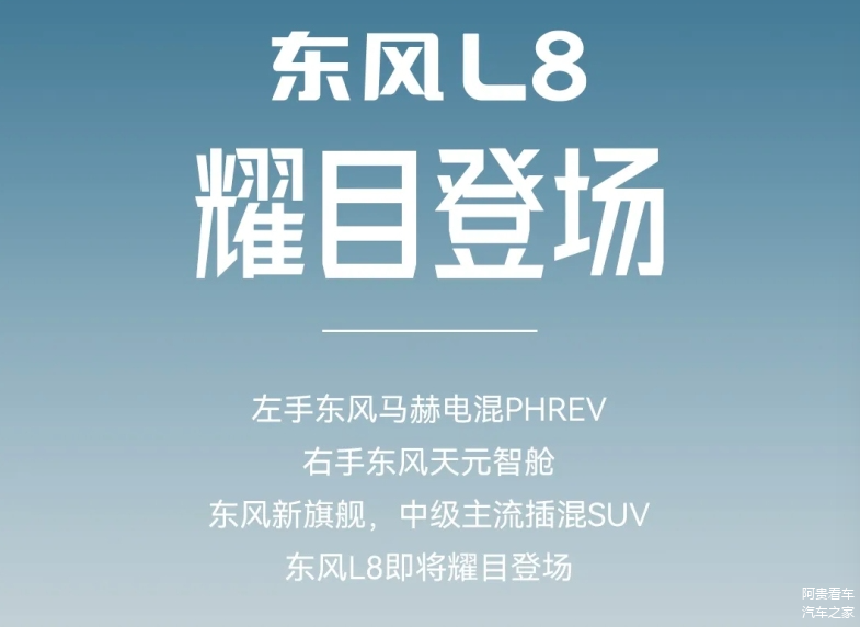不久前东风汽车发布了旗下全新SUV——东风L8,车型定位于中型插混SUV,定位比风神L7高,预计将在年中上市。设计上还是家族化的设计语言,前脸是贯穿的灯带,侧面线条挺有运动感,尾部也是贯穿式尾灯。从海报上看,新车的两大亮点是东风马赫电混PHREV和东风天元智舱。除了这些核心技术之外,其价格应该也比较有竞争力,毕竟东风旗下很多车型都是“价格杀手”,值得期待。