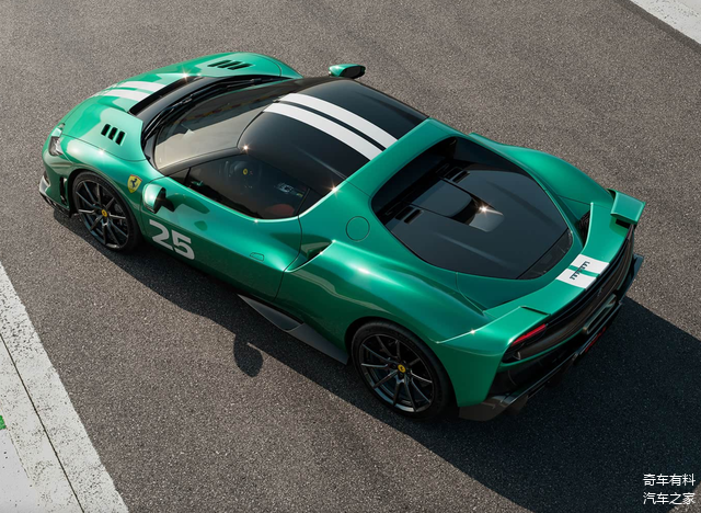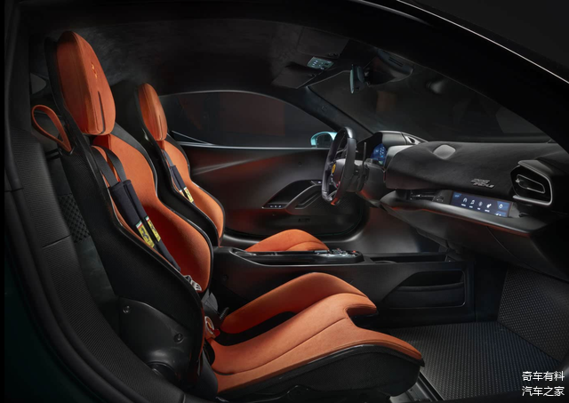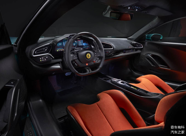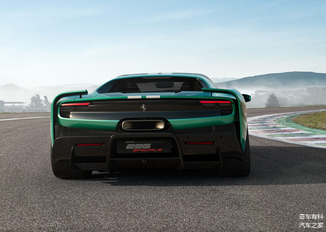 尾部,新车那全新的分段式扰流板宛如赛道上的羽翼,从车后翼子板优雅地延伸至车尾,使整体尾部造型愈发宽大,车身姿态犹如一头蓄势待发的赛道猛兽,充满了战斗的欲望。车尾扰流板巧妙融合了源自赛车的两大经典设计元素——法拉利 FXX K 所采用的垂直翼片和小翼设计,这些设计元素如同赛道上的空气动力学密码,精准地调控着气流,为车辆在高速行驶时提供强大的下压力;以及法拉利 296Challenge 保险杠上的垂直外部轮廓,这一设计不仅增强了车尾的视觉冲击力,更进一步优化了车辆的空气动力学性能,让车辆在赛道上能够更加稳健地飞驰。同时,车辆依旧采用中置排气布局,但下方包围采用了全新的造型,犹如赛道上的时尚战袍,与更加方正宽大的尾部造型相得益彰,彰显出独特的赛道魅力。此外,车尾扩散器的造型与尺寸也发生了显著变化,其独特的线条和结构如同赛道上的气流加速器,能够快速排出车底的紊乱气流,进一步提升车辆在赛道上的抓地力和操控性。