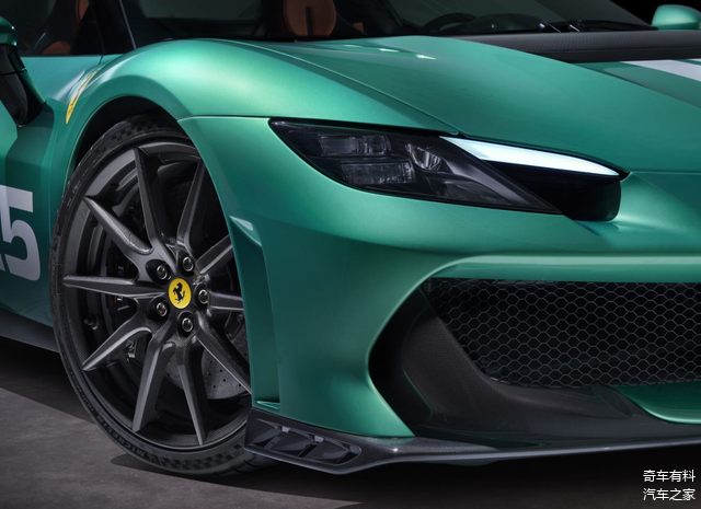 侧面,这两款新车犹如赛道上的利刃,散发着令人热血沸腾的竞技气息。它们分别搭载了法拉利标志性的五星轮圈与十辐造型轮圈,轮圈线条刚劲有力,犹如赛道上疾驰时车轮与地面摩擦留下的轨迹,尽显激进与狂野。车门下方新增的碳纤维侧裙,犹如为车身披上了一层坚实的赛道战甲,不仅减轻了车身重量,更提升了空气动力学性能。侧裙上配备的进气口,犹如赛道上的呼吸孔,高效地为发动机输送着新鲜空气,确保其在赛道上持续爆发出强劲动力。前包围侧面巧妙加入的通风口,则如同赛道上的气流调节器,精准地引导着气流,优化车辆的操控稳定性。此外,车辆外观拉花数字可在 00 到 99 之间任选其一,这一细节设计仿佛是为每一位赛道勇士量身定制的专属勋章,为涂装增添了独一无二的个性化亮点,让每一辆车在赛道上都能成为独一无二的存在。