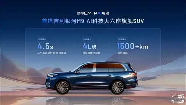 而雷神EM-P AI电混则通过匹配独立三电机四驱构型,让吉利银河M9这么一台庞然大物也实现了4.5秒的0-100km/h加速成绩,同时它的CLTC馈电油耗也仅为4L级,综合续航超1500km。