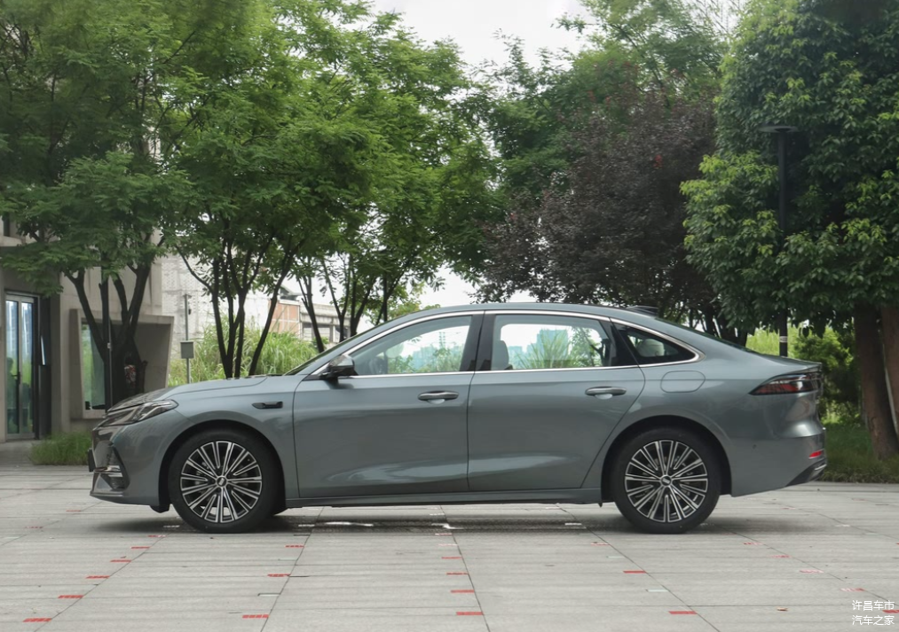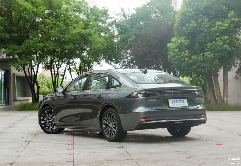 车身侧面,溜背式造型与上扬的双腰线相得益彰,营造出一种蓄势待发的姿态。车窗四周的镀铬饰条和19英寸密辐式轮毂,为整车增添了一份高级感。同时,新车提供霁海蓝——霁色天青、玄玉黑——玄夜未央等六种车身颜色选择,满足了不同消费者的个性化需求。