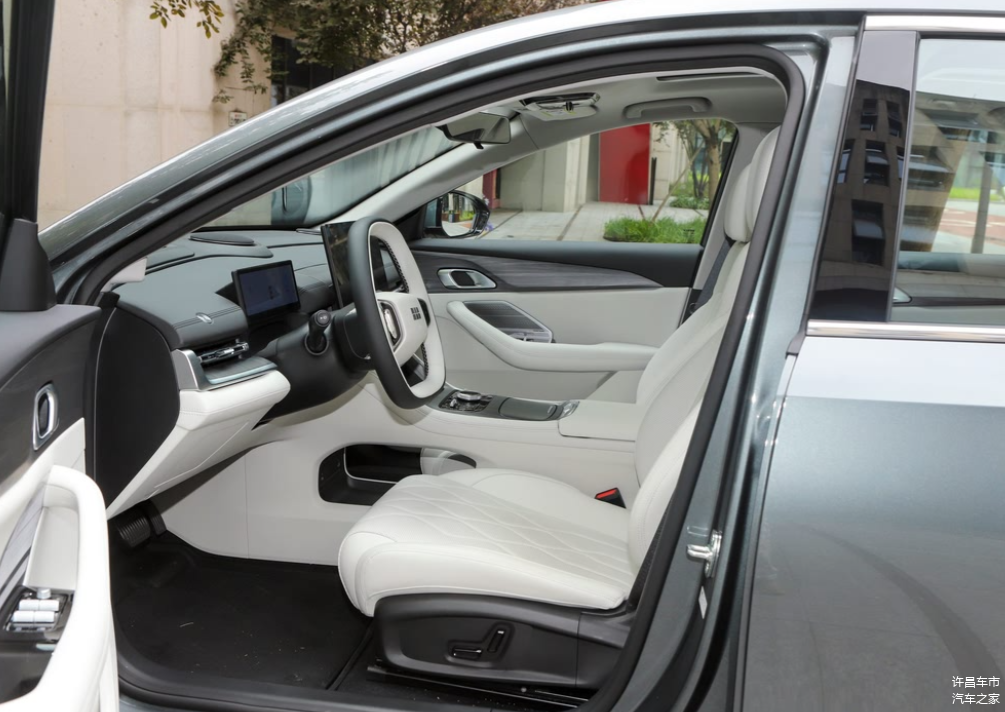 中控台采用了简洁而立体的T型设计风格,与15.4英寸的悬浮式中控屏和8.8英寸的液晶仪表相结合,共同构建了数字座舱的核心结构,同时其怀挡的设计也更加方便快捷。在中控上嵌入了一个大尺寸触摸屏,可实现语音控制功能。物理旋钮位于中控岛台上,使用起来非常便捷。银色金属拉丝材质座椅靠背,舒适自然,更符合驾乘者对汽车驾驶舒适性要求。车辆内部广泛采用了软质材料、皮革覆盖、木纹装饰板和镀铬装饰条进行装饰,并提供了霁雪白、秋韵棕、烟波灰三种不同的内饰颜色选项。