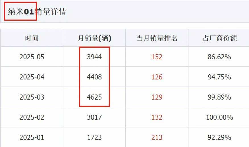 纳米01作为东风纳米旗下首款车型,在去年1月份上市,但是销量就一直在1500辆上下,直到5月份销量才突破2000辆。
