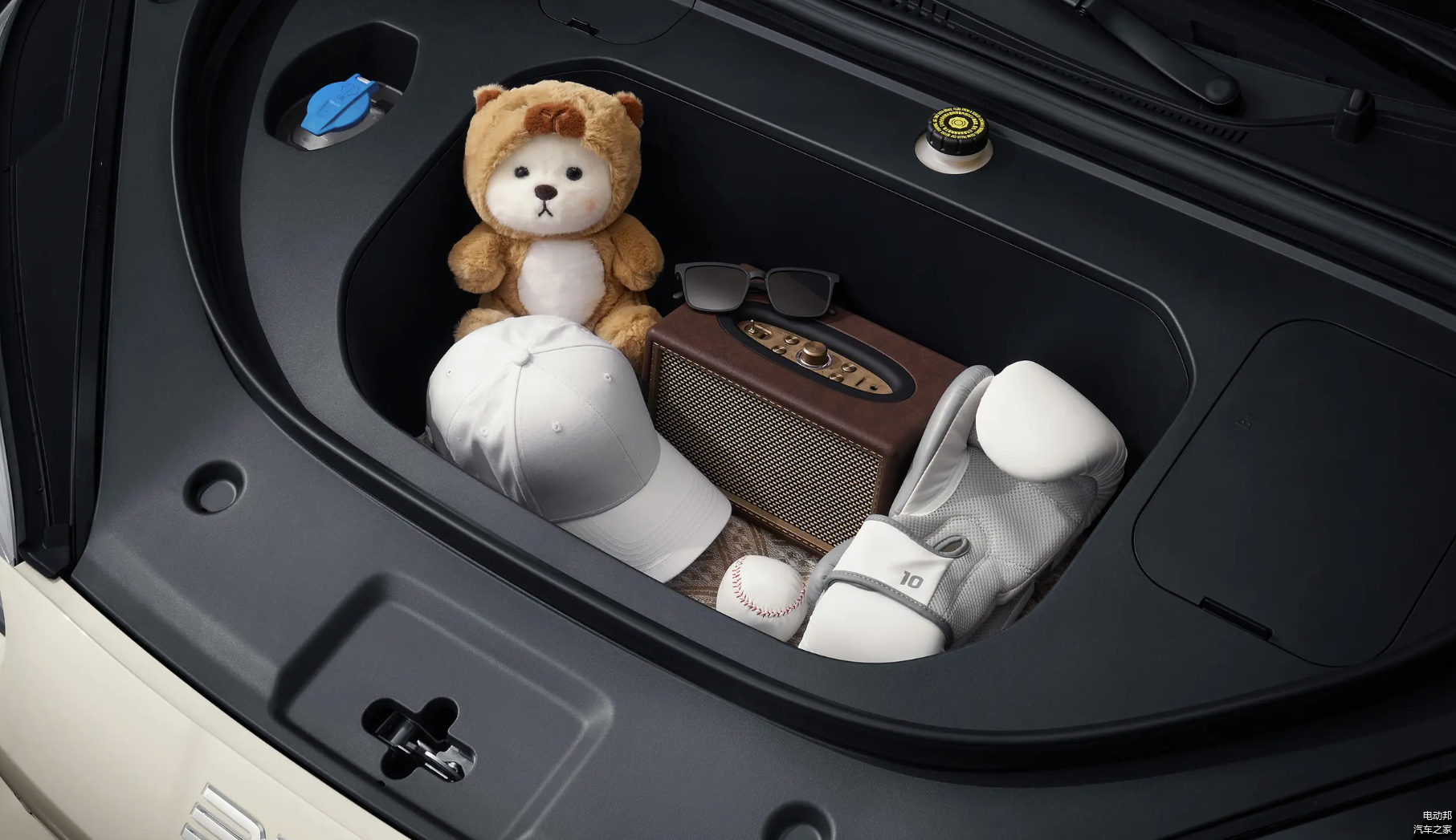 得益于纯电架构,海豹06EV在前舱盖下挖出了一个65L的前备厢,实用性小小提升。