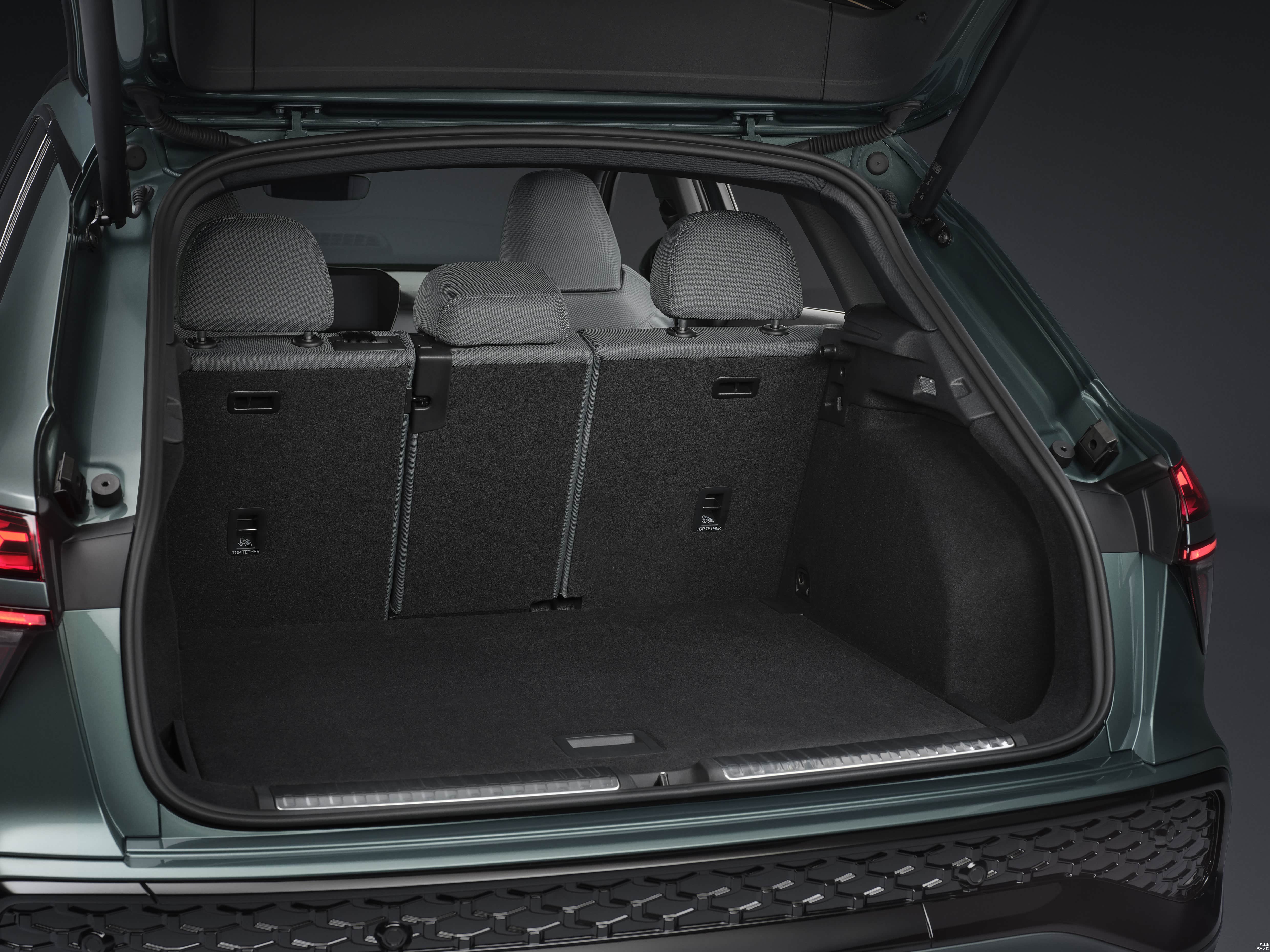 内饰配置:全新一代Q3搭载11.9英寸数字仪表盘+12.8英寸中控曲面双联屏,其中,中控台的曲面设计以驾驶员为导向布局,怀挡设计释放了传统挡把区域的空间,作为支持15W功率的手机无线充电槽,后排座椅支持前后滑移与靠背调节,使得后备容积可在488L-1386L(后排靠背放倒)之间变化。