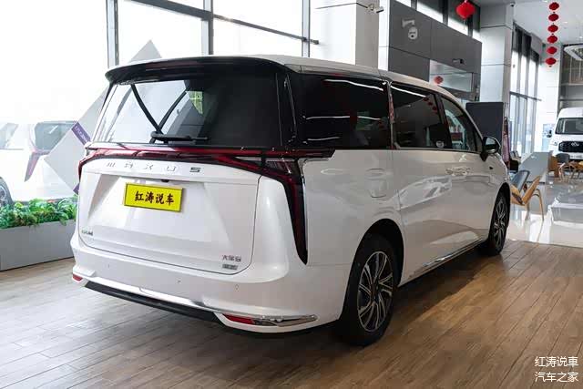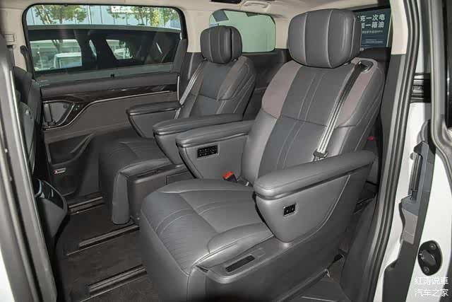 整车长宽高分别为5270*2000*1848毫米,轴距为3200毫米,是个很有气场的大块头,配备了双侧电动侧滑门和电动感应尾门,前排和后排均是多层隔音玻璃,后排侧窗还是隐私玻璃,尾部高大立体,贯穿式尾灯两侧呈现出纵向布局样式,LED光源点亮效果出众。