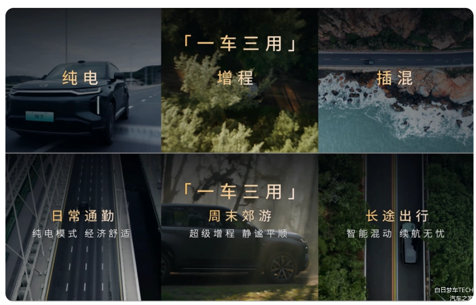 在动力方面,传祺向往S7采用了“智能混动+超级增程”双模架构,可以实现纯电、增程和插混三种驱动模式,以更好地应对不同的使用场景。其中,一款1.5T插电式混合动力发动机,峰值功率达到118千瓦,峰值扭矩为220牛·米。在电驱动方面,传祺向往S7单电机版本电驱动功率为170千瓦,系统综合功率288千瓦,零百加速时间为7.9秒;双电机版本在后轴上增加了一台80千瓦的电机,系统综合功率提升至368千瓦,零百加速时间为5.8秒。