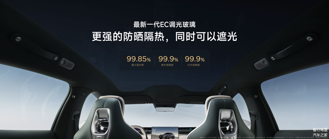 此前,小米SU7的防晒功能备受好评,而小米YU7则再次提升了防晒、隔热和遮光性能。例如,前风挡玻璃采用3 层镀银、1.7 平方米天幕玻璃双层镀银,Max 版还标配智能调光天幕。雷军表示,38℃环境下暴晒 1.5 小时后,车内温度为 53℃,低过配备了物理遮阳帘的特斯拉焕新 Model Y 和保时捷 2024 款卡宴。