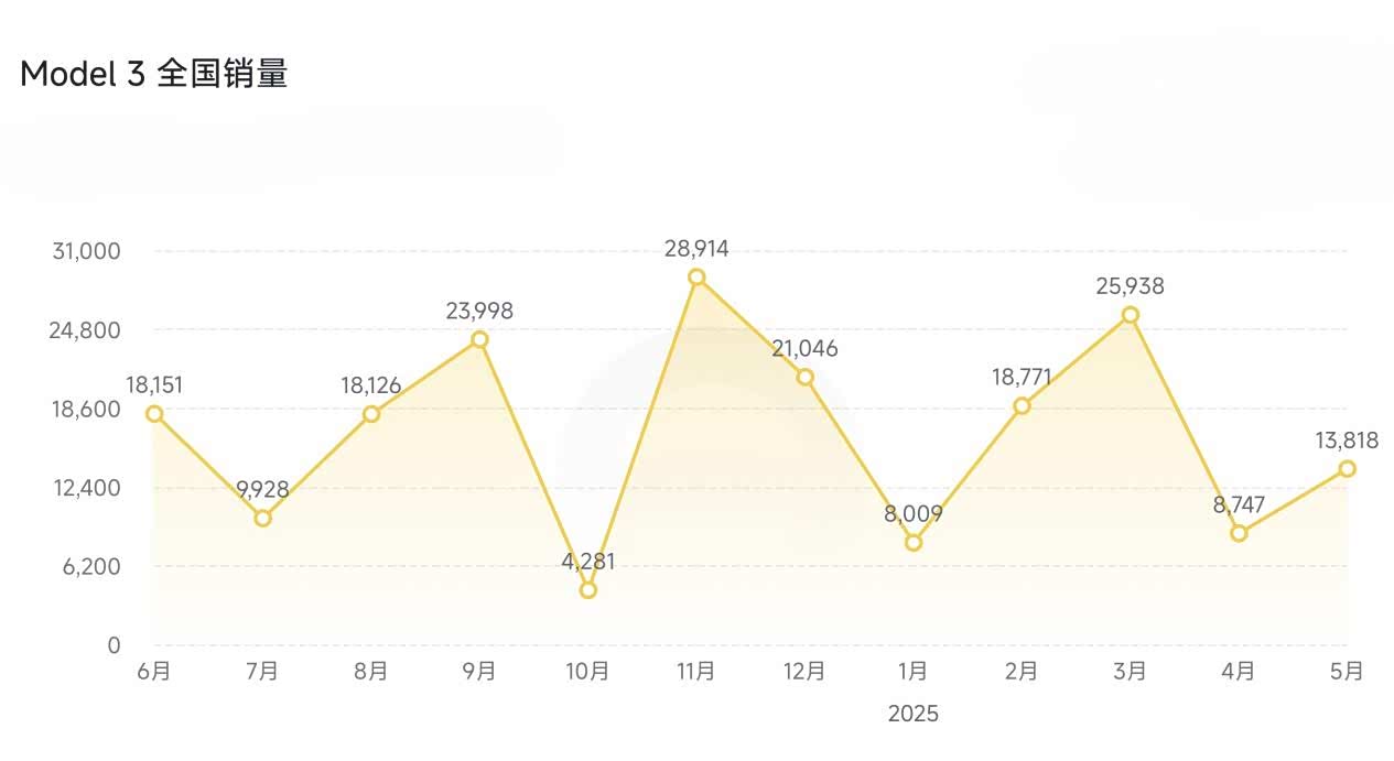 进入2025年,Model 3月均销量超过1.4万辆,而上述几款自主品牌车型的月销量仍徘徊在几百到数千辆,与小米SU7和Model 3均有较大差距。