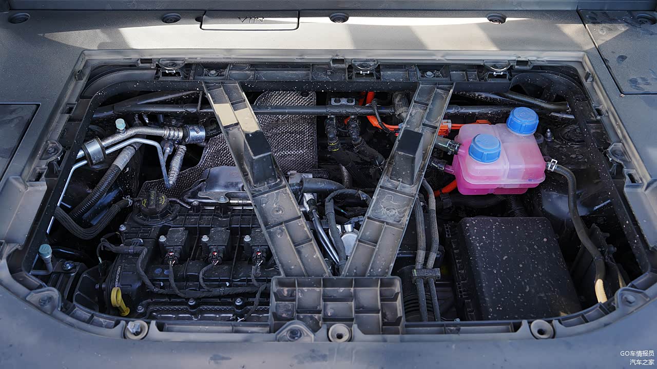 深蓝G318的引擎盖配备了两个扩展点,可以外接探照灯、运动相机等设备,满足一些户外场景的需求。豹5的引擎盖比较光滑,不具备扩展性。