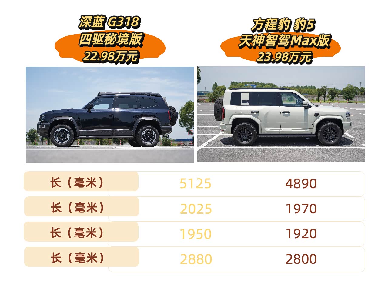 外观对比:豹5的方盒子造型很硬朗,深蓝G318的机甲美学更出片