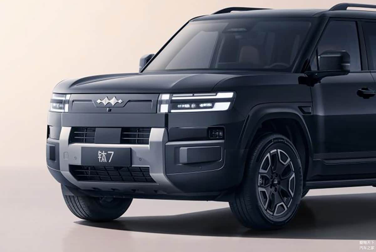 继方程豹钛3上市之后,该系列又将迎来第二位成员—— 钛7(图片 | 参数 | 询价)。一看这命名方式,就知道新车采用承载式车身,定位是偏城市家用风硬派SUV。