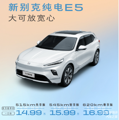 在价格层面,新款别克 E5 展现出了十足的诚意。14.99 万元的起售价,直接拉低了其在市场中的价格门槛。与同级别竞品相比,像特斯拉 Model Y 等车型,入门款价格远超 20 万元,别克 E5 在价格亲民度上有着显著的领先。不仅如此,它的价格体系极为简洁,三款车型依据续航里程定价,分别为 515KM 先享版 14.99 万元 ,545KM 智享版 15.99 万元 ,620KM 尊享版 16.99 万元。消费者无需在繁杂的配置价格组合中纠结,仅需依据自身对续航的需求,就能轻松挑选出适配的车型,大大提升了购车决策效率。