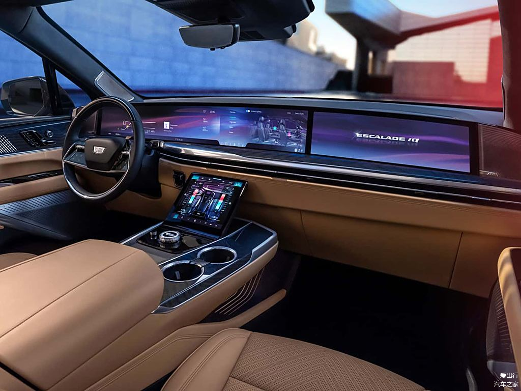 走进车内,ESCALADE IQ的内饰堪称豪华与科技的完美融合。车内配备了一块55英寸的大尺寸LED曲面屏,搭载新一代高通Snapdragon智能座舱平台,交互体验流畅无比。屏幕的清晰度和画面表现力在同级车型中堪称佼佼者,让车主的使用感受大幅提升。