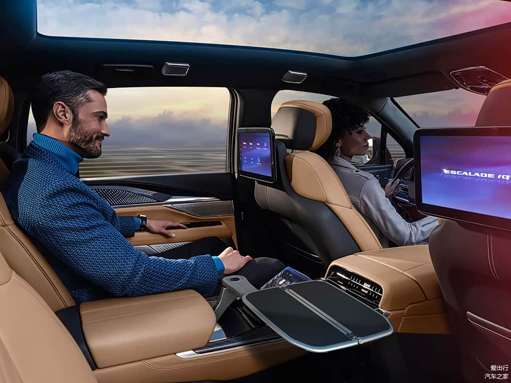 在空间布局上,ESCALADE IQ充分考虑到了豪华舒适性。第二排的行政座椅功能丰富,按摩、加热、通风一应俱全,为乘客带来极致的舒适享受。后排的双12.6英寸显示屏,可进行娱乐互动,头枕扬声器让乘客沉浸在丰富的音响效果中。