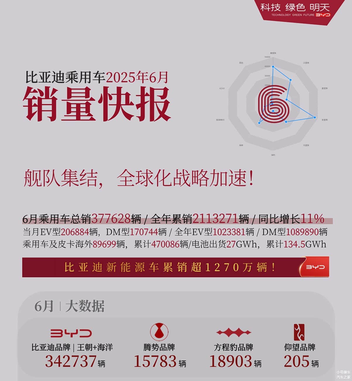 日前,比亚迪官方公布了2025年6月份的销量表现。