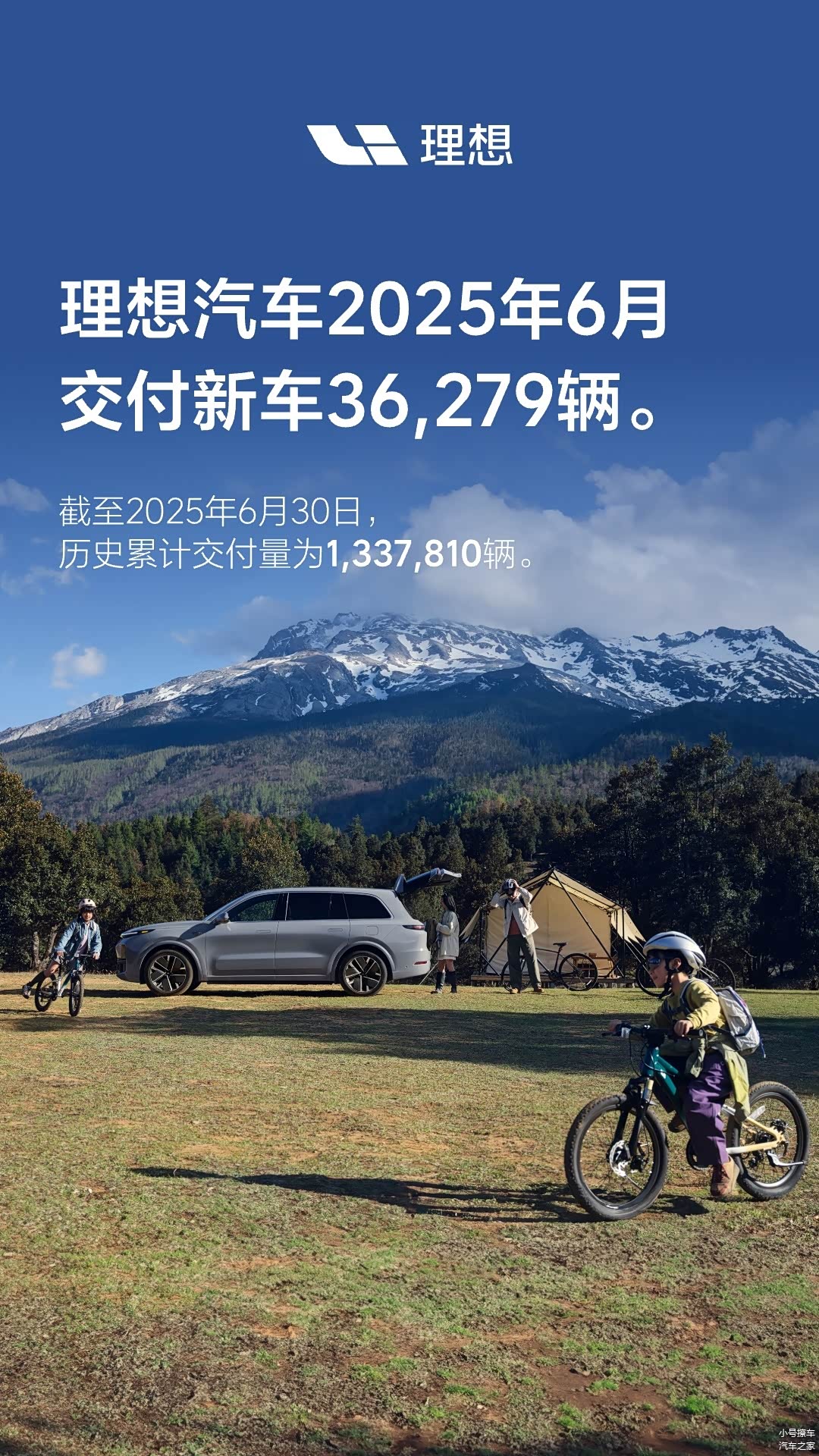 理想汽车已经跌出了新势力前三,6月份排名第四,单月交付36279辆,二季度累计交付111074辆,历史累计交付量达到了13337810辆。不过今年理想汽车目标为70万辆,上半年完成率未过半,下半年压力还是比较大的,只能寄希望于理想i8这些纯电动车型能够成为爆款了。