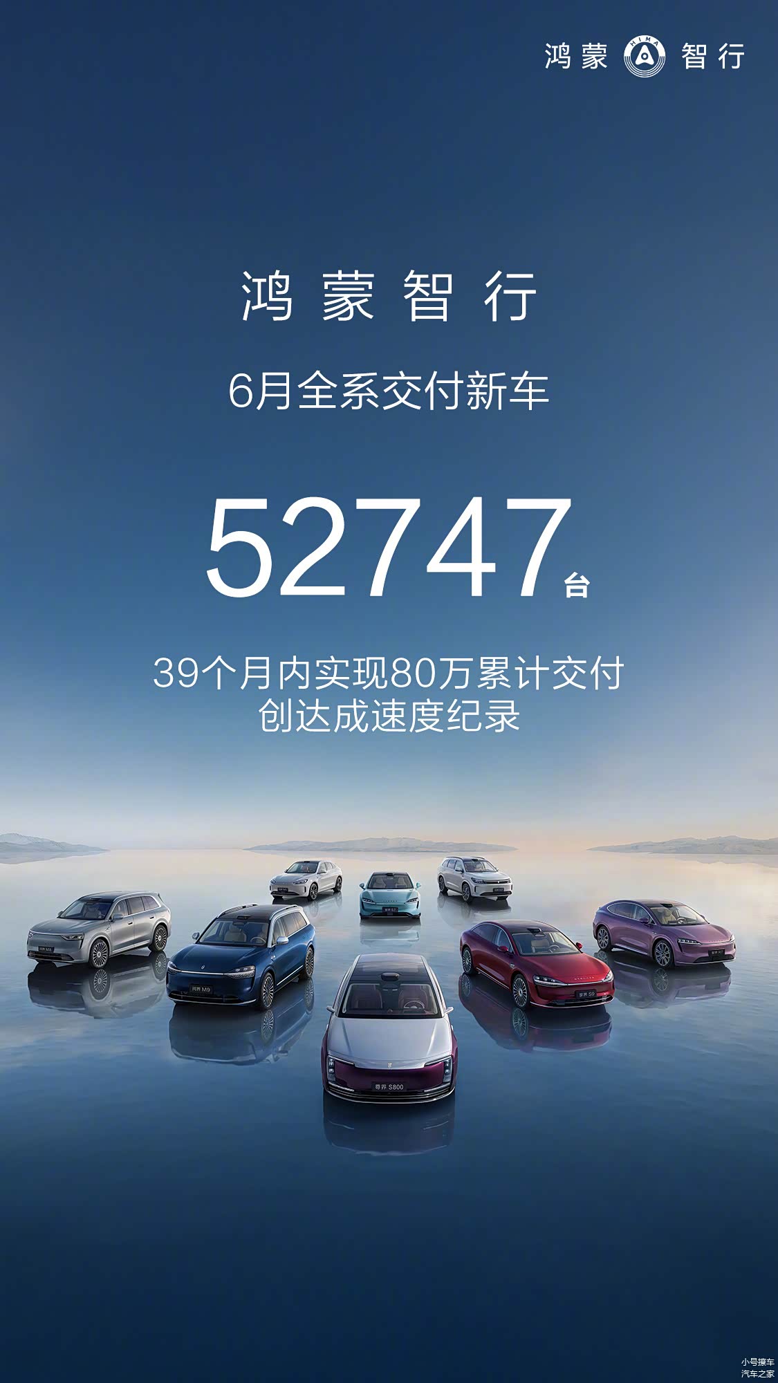 首先是鸿蒙智行,不过这并不是一个车企,而是一个品牌联盟,所以就不单独排名了,整个鸿蒙智行6月份全系交付新车52747台,目前已经实现了累计80万辆的交付,不过单独按照品牌来计算的话,表现最好的问界6月份交付新车44685辆,可以排在第二名,包括 问界M8(图片 | 参数 | 询价)以及问界M9都是绝对的主力军。