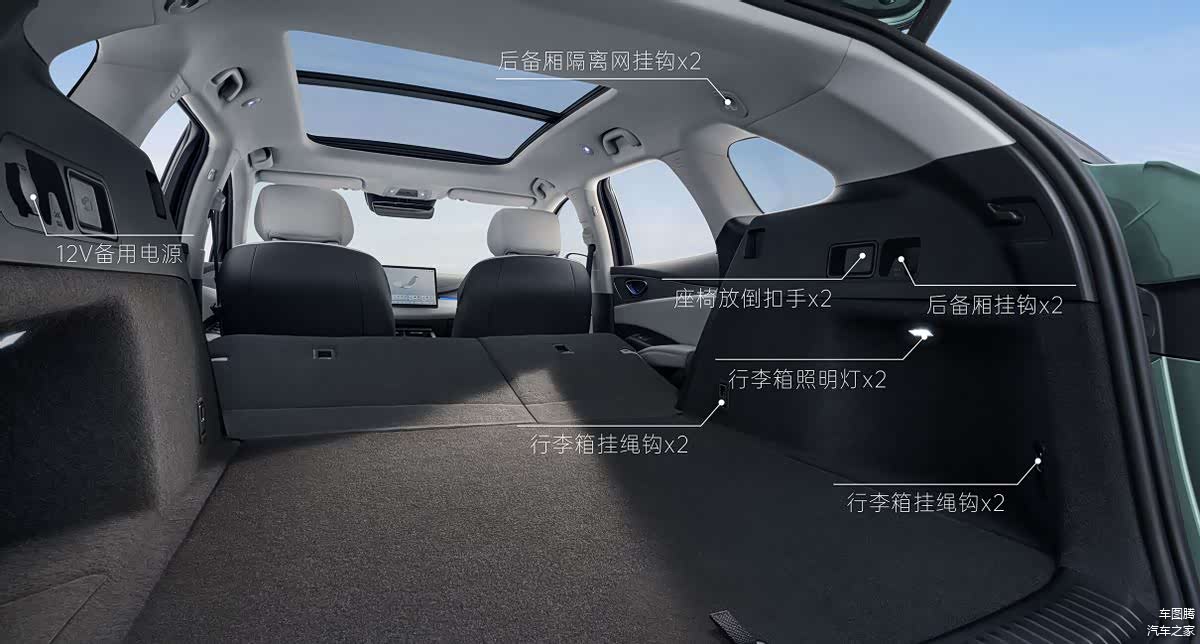 进入内部,海豹06DM-i旅行版造型依然很熟悉,提供海韵灰和深曜黑两种颜色选择。中控台样式有些偏向海豹06 DM-i三厢版的设计风格,不过新车采用了怀挡设计。配置方面,新车配有50W手机无线充电、前排座椅通风/加热、冷暖两用的车载冰箱、带遮阳帘的全景天窗、12.8英寸中控屏、DiLink 100、电动后备箱等功能。海豹06DM-i旅行版后备箱常规容积为650L,放倒后排座椅后空间进一步扩展至1535L。