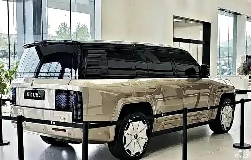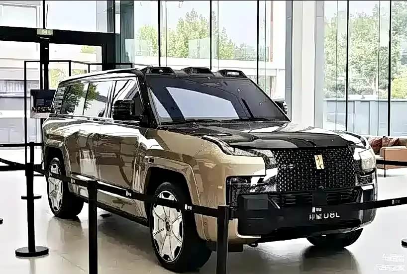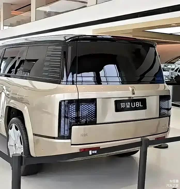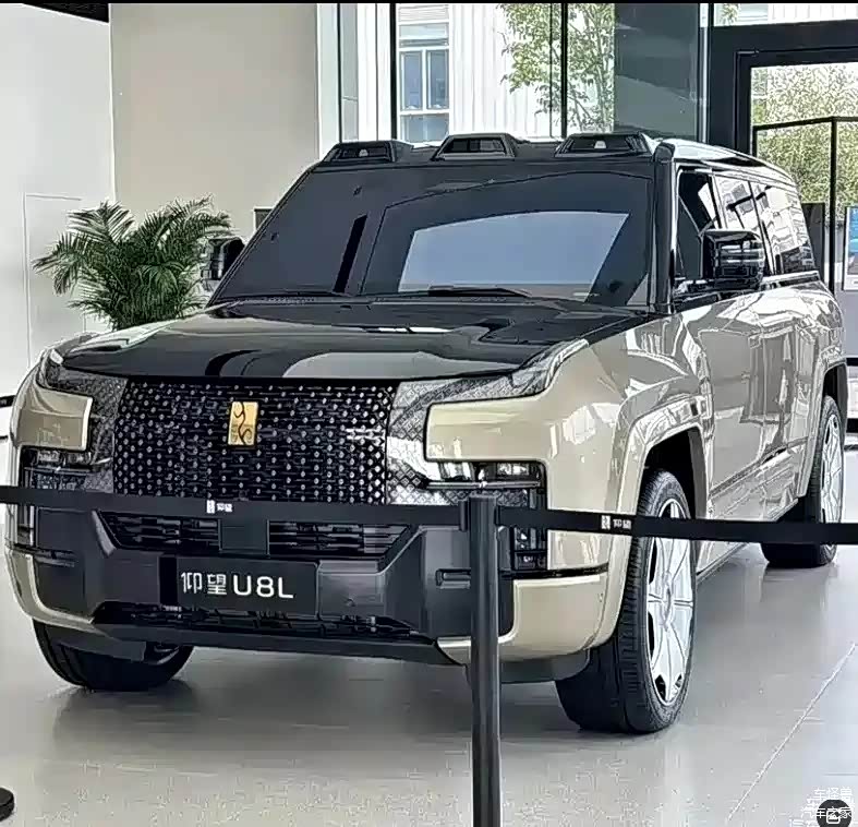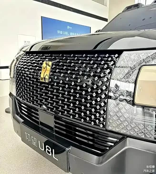 仰望 U8L 设计延续 U8 硬派风格,细节 “镀金” 处理拉满奢华感。这款车的前脸配有鼎形大灯和点距式格栅,展现了仰视的家族特色。此外,它还新增了双色车身(上浅下深)和23英寸的“大饼轮毂”,侧面的线条非常平直,车身长度为5.4米,给人一种“移动的宫殿”的感觉,气场非常强大。其中最引人注目的是24K的黄金车标——格栅中央嵌有甲骨文中的“仰”字,这在阳光下显得温暖而有光泽,与纯金的俗气形成鲜明对比,通过其材质来展示其社会地位。与BBA镀铬标相比,“中式符号+贵金属”的组合展现出更多的文化底蕴,真可说是巧妙的设计。