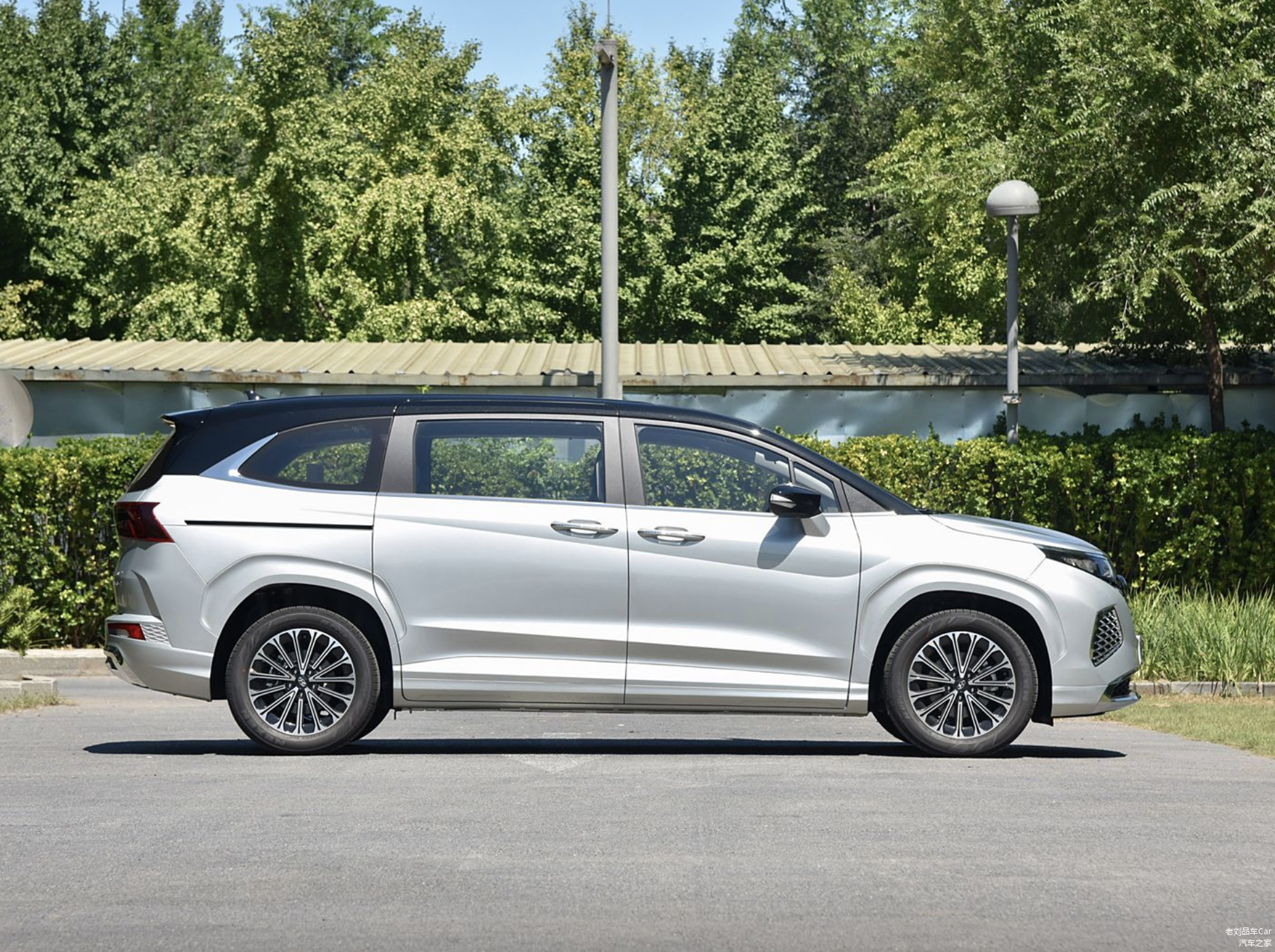 外观虽然没有采用传统MPV的方正造型,但是车身线条很协调。前脸上是多边形前进气格栅,里面以高亮的鳞片状镀铬填充;匹配LED分体式大灯,整个前脸非常大气、时尚,也很有视觉辨识度。车身侧面采用微微上扬的线条设计,很有力量感,视觉上也延长了车身长度。轮圈方面,除了入门版使用17英寸轮毂,其他车型使用更大一号的18英寸轮毂。作为一款中大型MPV,长宽高分别为4950*1850*1734毫米,轴距达到了3055毫米,与同为中大型MPV的2024款赛纳的3060毫米轴距差不多。