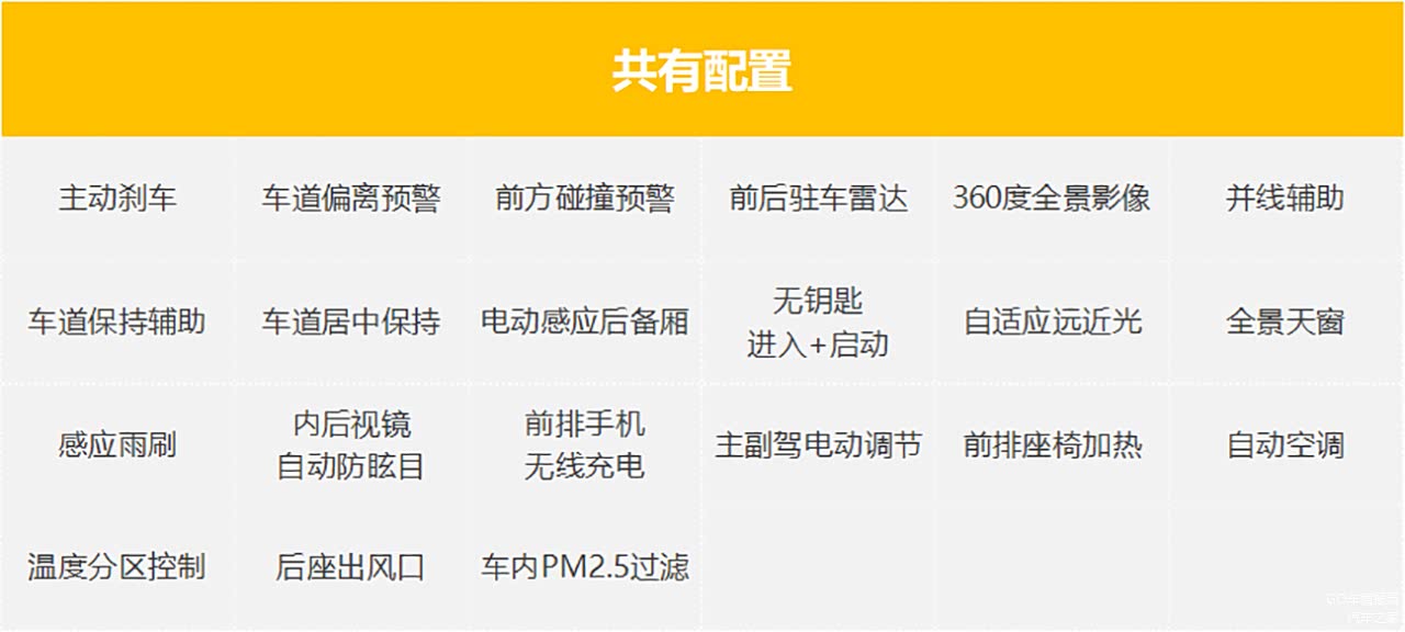 两车共有的配置还是比较多的,舒适性和安全性都有照顾到,像360度全景影像、手机无线充电、电动感应后备厢等是比较刚需的功能。