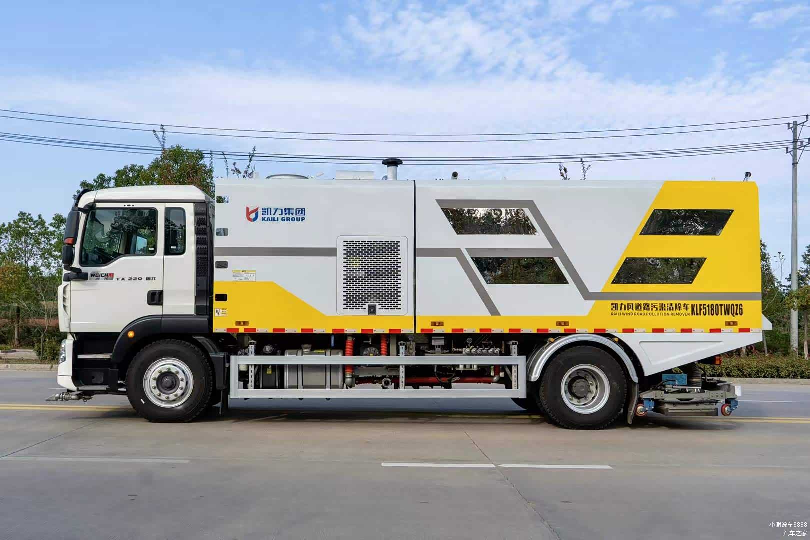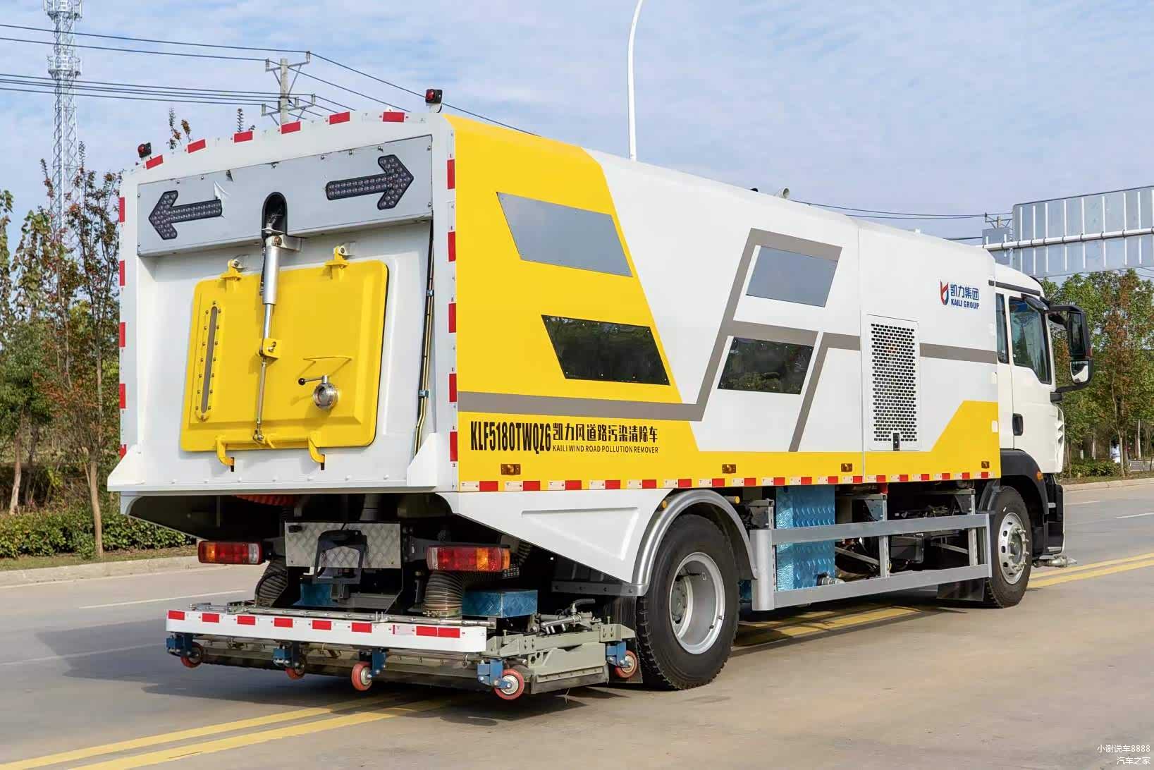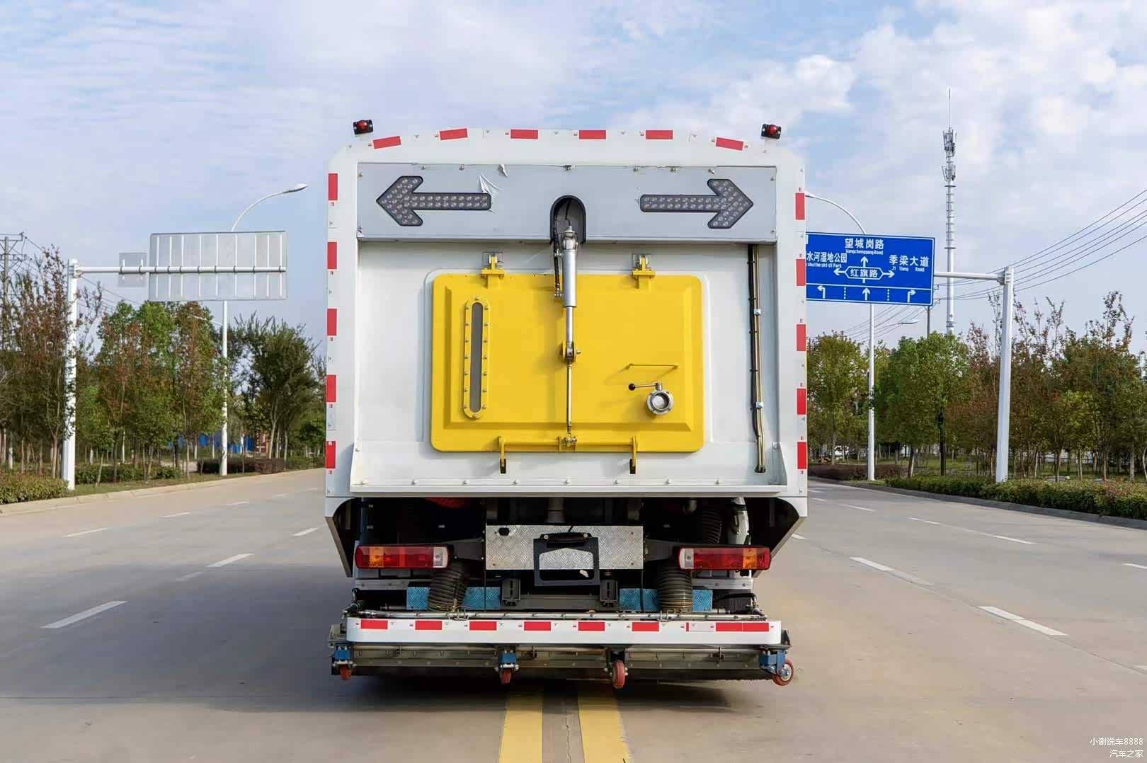 整车水箱容积4.5立方、垃圾箱(湿式垃圾仓)容积7.5立方、滤筒仓4立方。垃圾箱采用双层上下结构,箱体为不锈钢材质。中置清扫车左右立扫、后置滚扫吸盘(吸盘内部加装高压喷杆)、左右高压侧喷杆(可单独工作一边也可同时打开)。前独立水箱、中部滤筒仓及后尾部双层垃圾箱。风道匹配晴雨天干湿转换风道(根据不同天气、路况选择相对应的作业模式)。