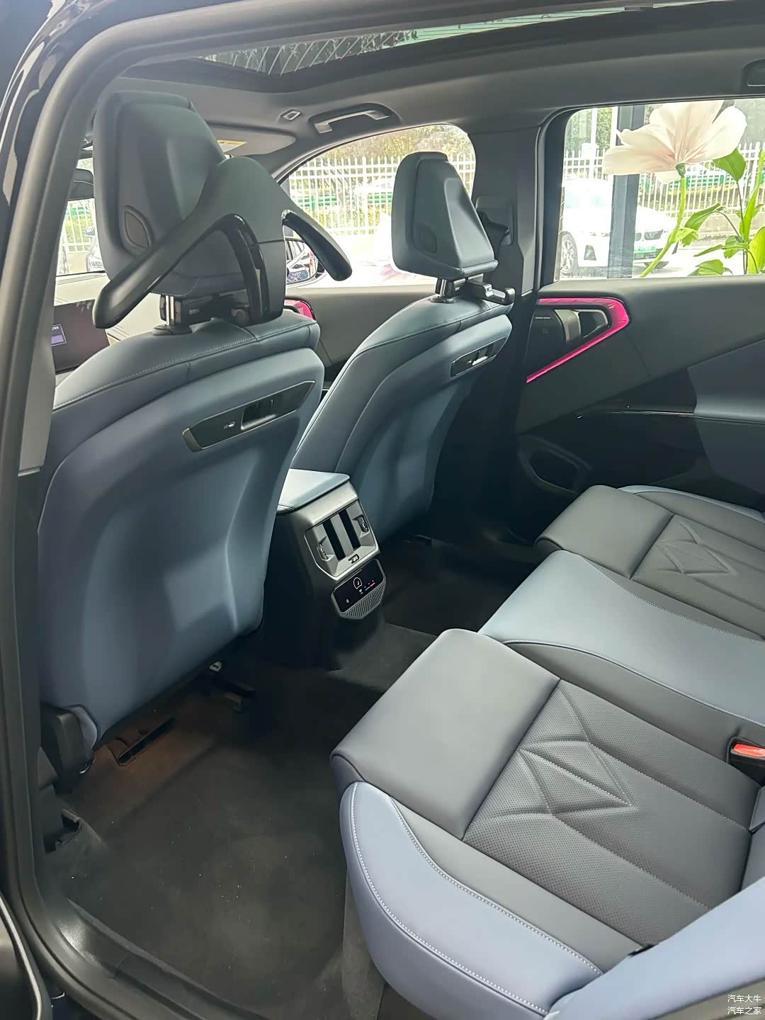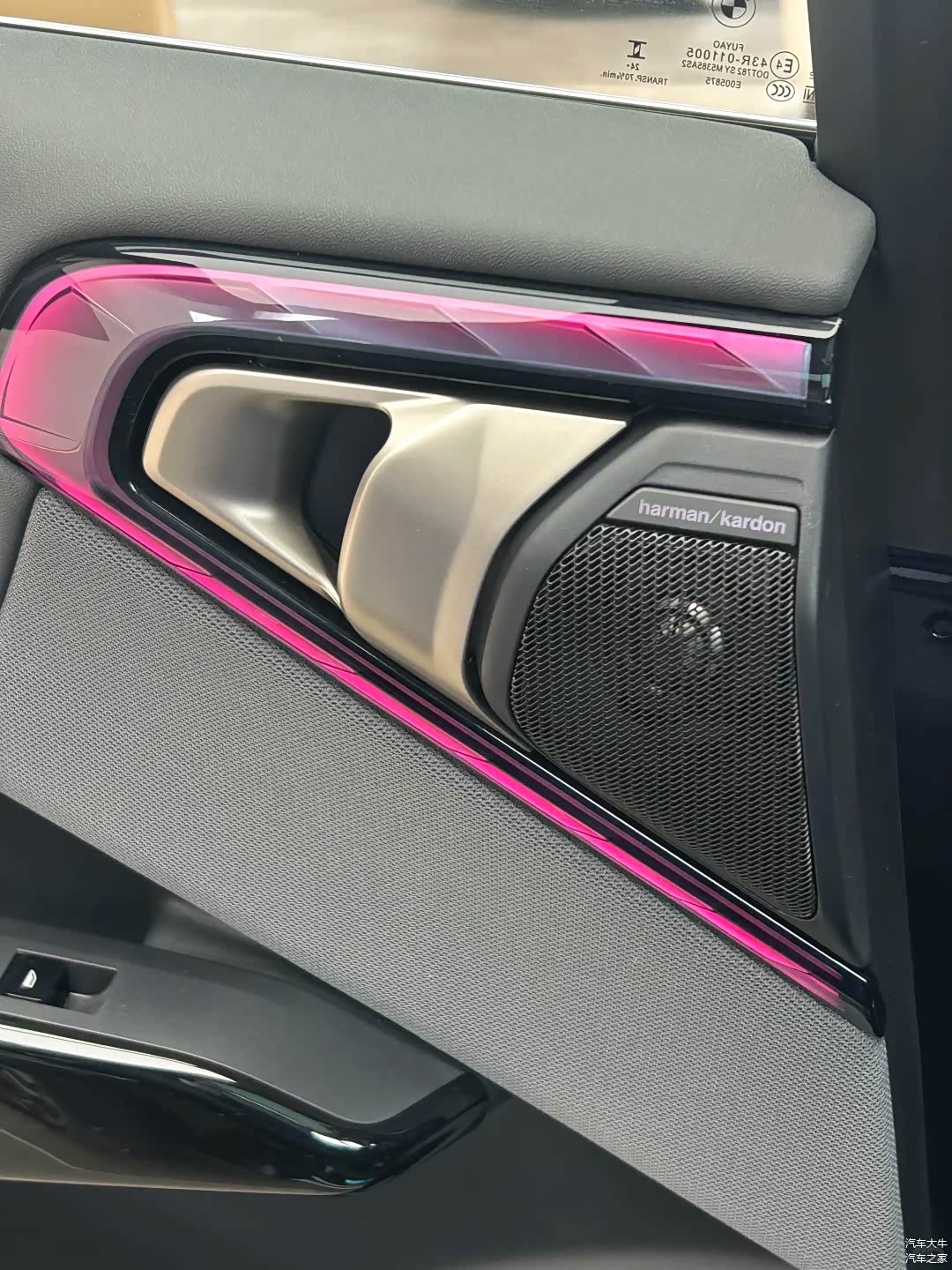 搭载的第 9 代 iDrive 系统虽然 UI 设计略带复古风格,但功能丰富度和响应速度无可挑剔,导航、音乐、车辆设置等操作一气呵成。车内大面积覆盖真皮和软性材质,精致的缝线与金属饰条点缀其间,质感肉眼可见。最让人惊喜的是可随心调节的氛围灯,10 余种颜色搭配不同驾驶模式自动切换,夜晚开车时,柔和的光影在车厢内流动,浪漫又高级,仿佛置身移动的豪华会所。