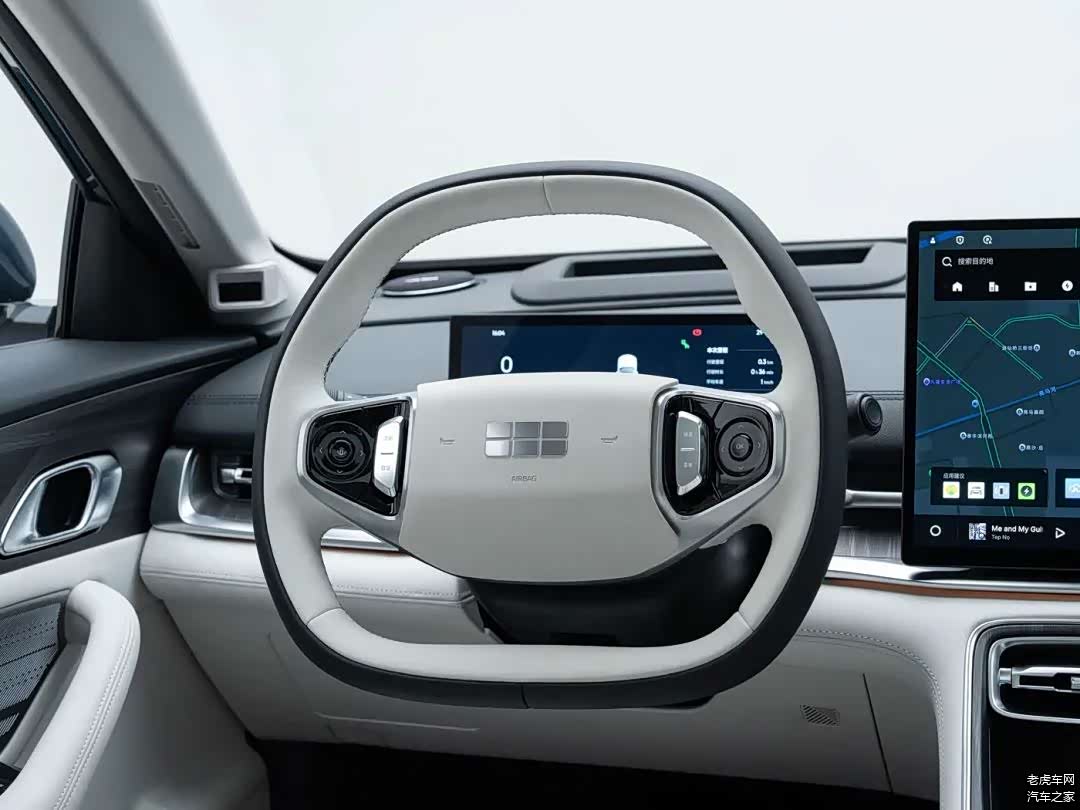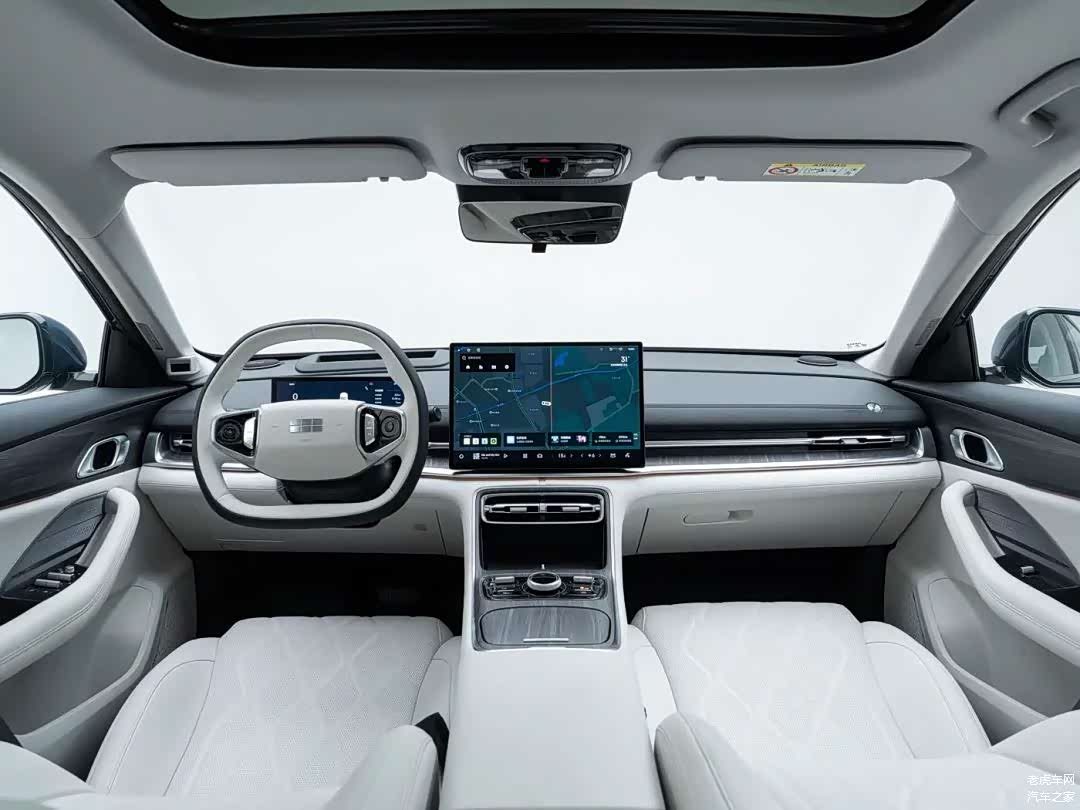 内饰方面,新车提供霁雪白、秋韵棕、烟波灰三种内饰颜色,并采用了大量的软质材料、皮质包裹、木纹饰板和镀铬饰条进行装饰升车内质感,中控台与星耀8设计风格接近,提供15.4英寸大尺寸悬浮式中控屏以及12.3英寸液晶仪表盘,中控岛台上采用物理旋钮,更方便车主操作。同时,车内氛围灯以及木质材质的应用也提使用怀挡式换挡机构,副仪表台区域设计有手机无线充电板、带盖板的储物槽和物理按键的多功能控制区。此外,新车搭载基于魅族Flyme Auto深度定制的银河NOS系统,搭载千里浩瀚H3智能辅助智驾方案,能够支持高速NOA领航辅助和APA自动泊车功能。